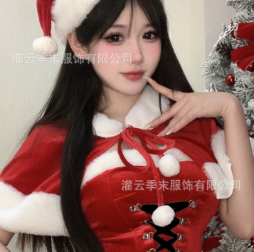 벨벳 달콤한 섹시한 란제리 새로운 크리스마스 옷 겨울 목도리 달콤한 허리-타이트 분위기 새해 붉은 전투 가운스토어 가기