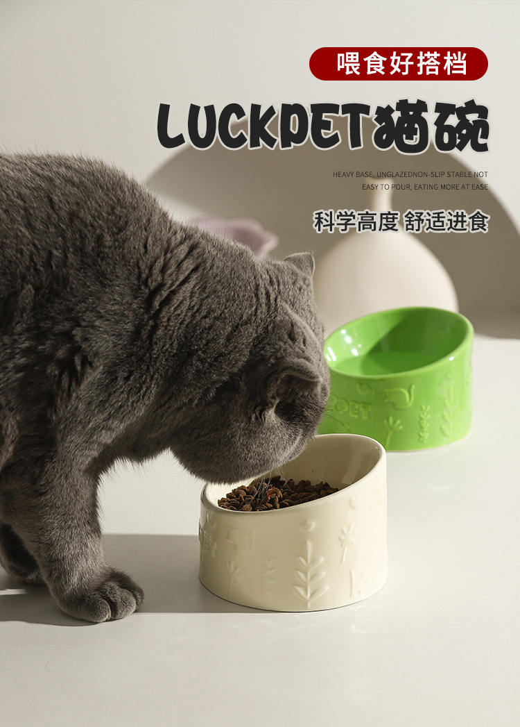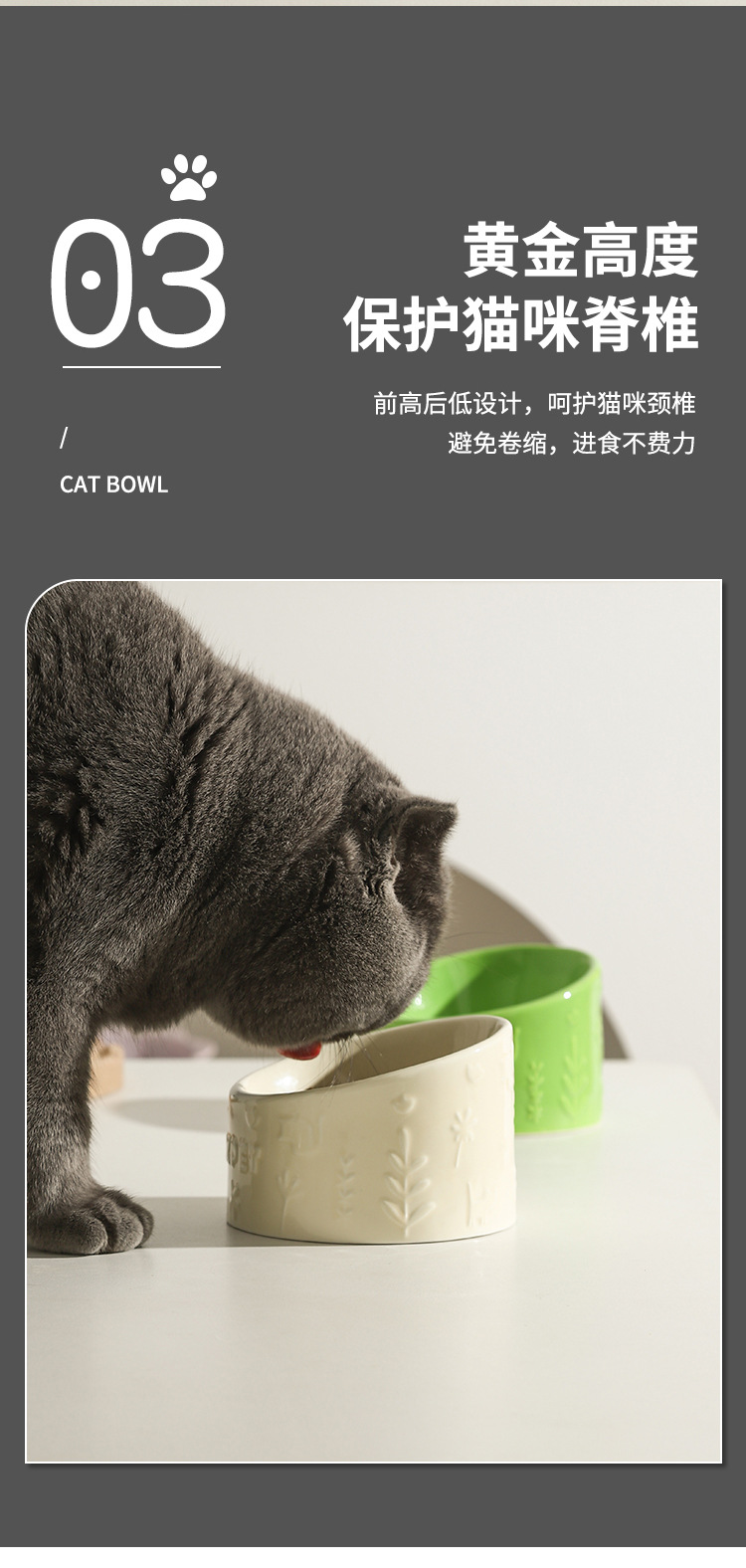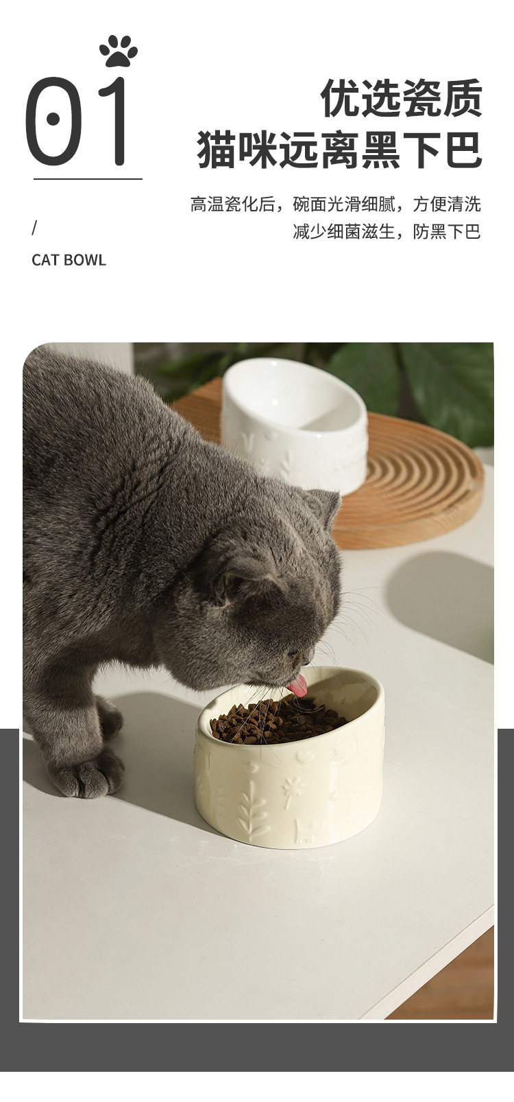 고양이 그릇 세라믹 고양이 그릇 마시는 그릇 고양이 밥 그릇 고양이 음식 비스듬한 구호 안티 블랙 친 애완 동물 그릇 개 그릇스토어 가기