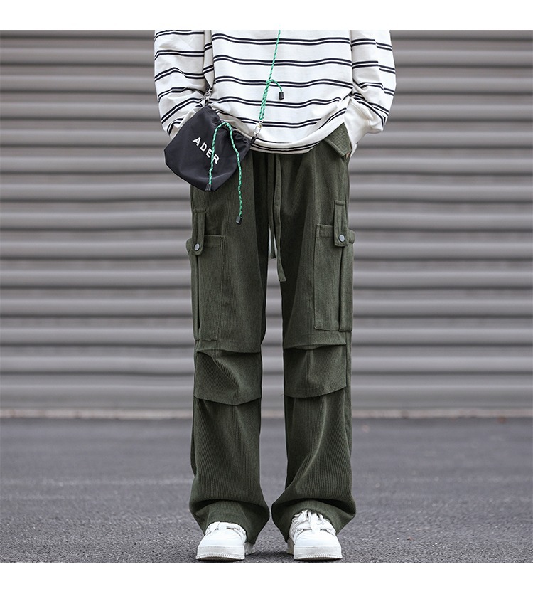 Corduroy 작업복 남성 봄과 가을 스포츠 캐주얼 바지 미국 패션 브랜드 ruoshuai 느슨한 스트레이트 와이드 레그 바지