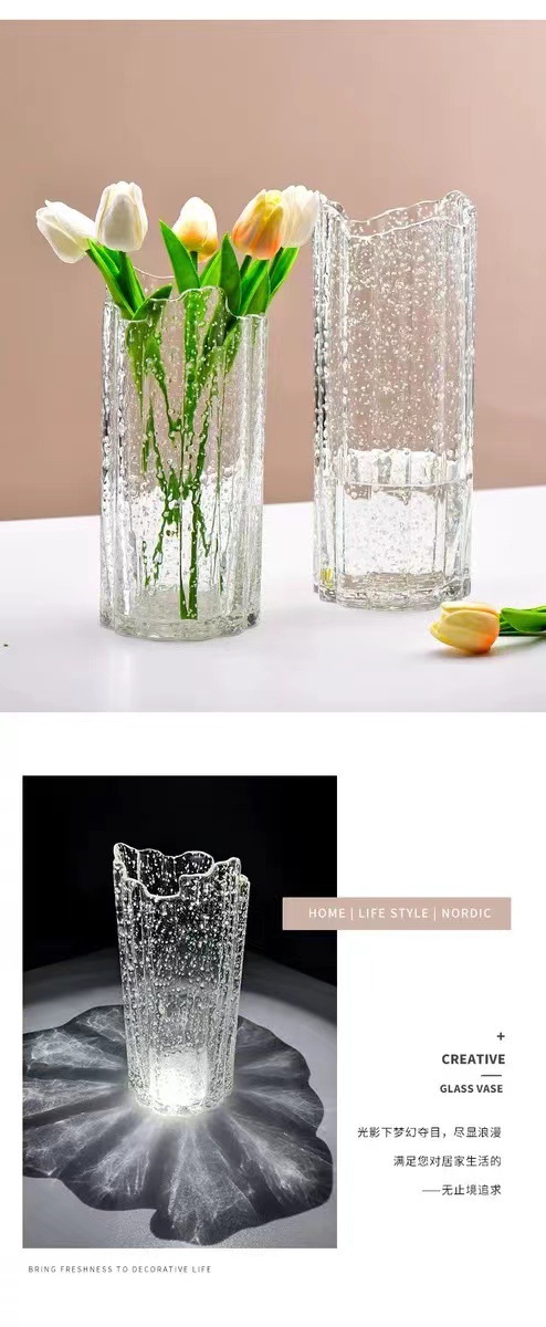 높은 모습의 빛나는 유리 꽃병 투명 유리 꽃병 도매 꽃병 창조적 인 유리 장식 꽃병 큰스토어 가기