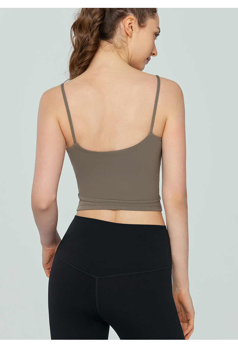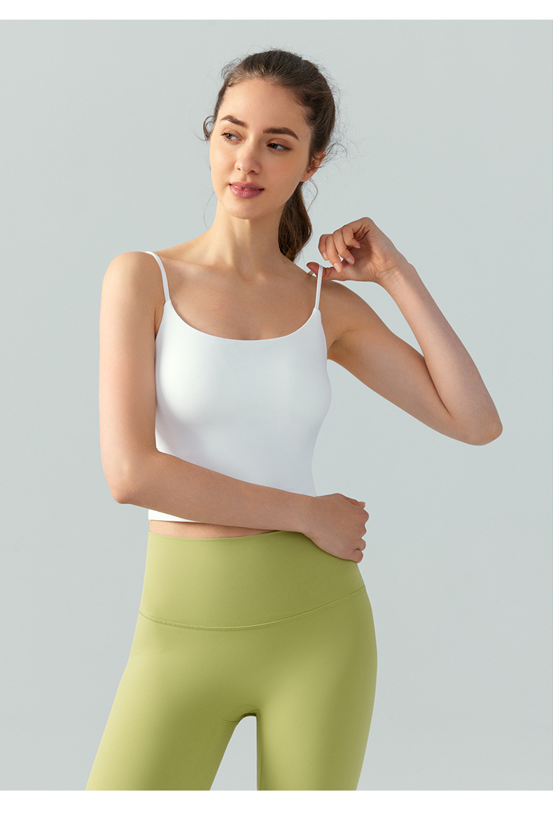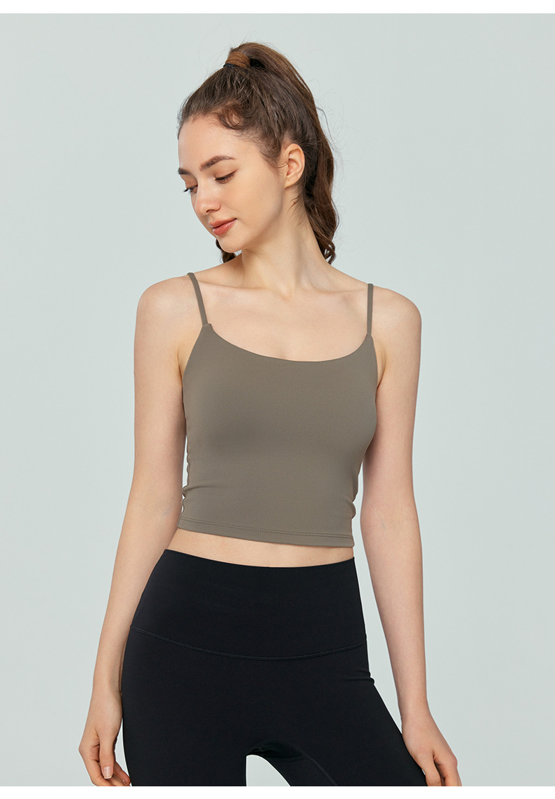 섹시한 U 자형 요가 조끼 탑 얇은 어깨 끈 짧은 꽉 슬림 세미 고정 컵 스포츠 브라
