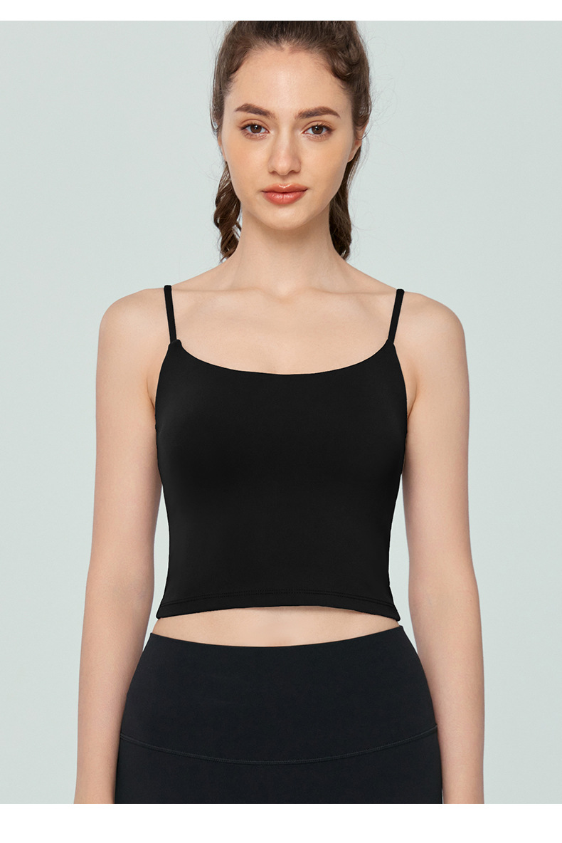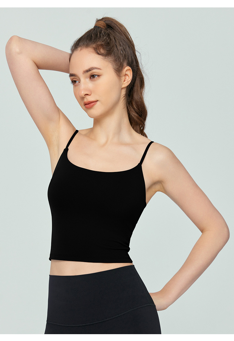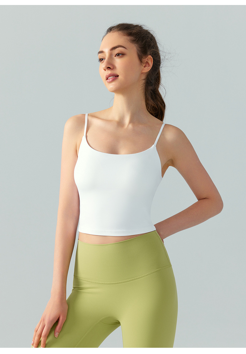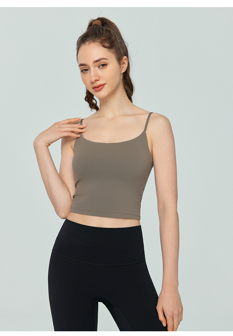 섹시한 U 자형 요가 조끼 탑 얇은 어깨 끈 짧은 꽉 슬림 세미 고정 컵 스포츠 브라