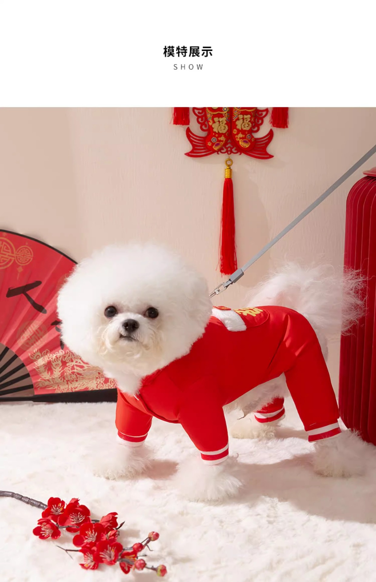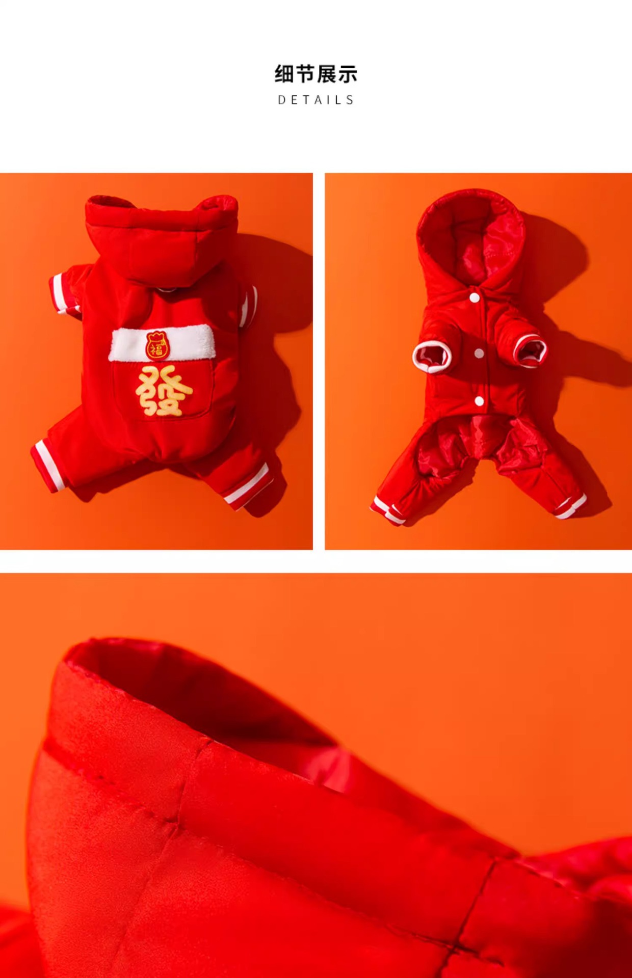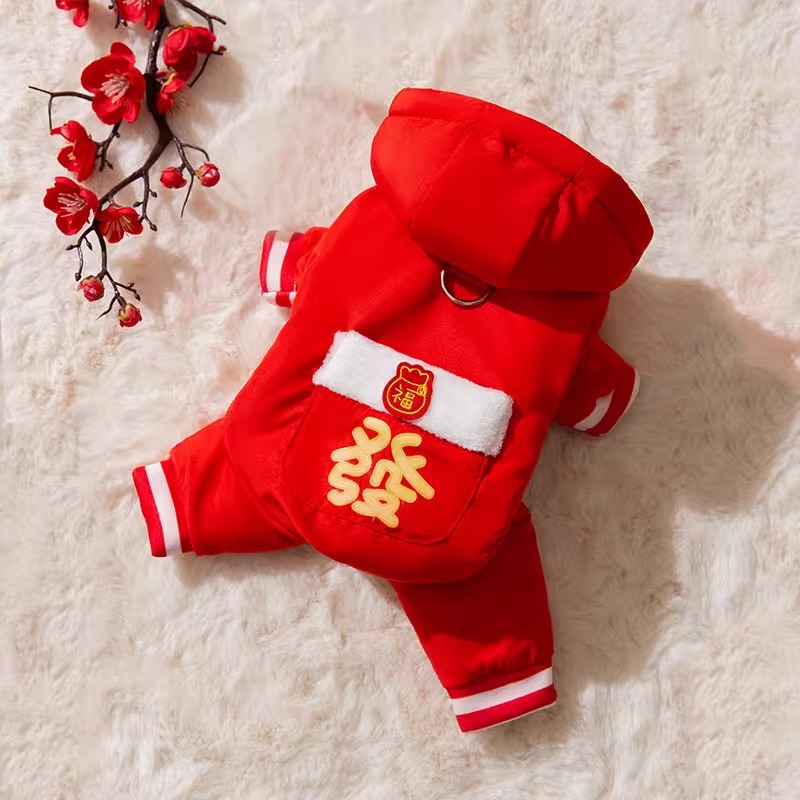 새해 푸 캐릭터 포켓 네 다리면 패딩 옷을 두껍게 한 작은 개 네 다리 따뜻한 애완견 옷 도매스토어 가기