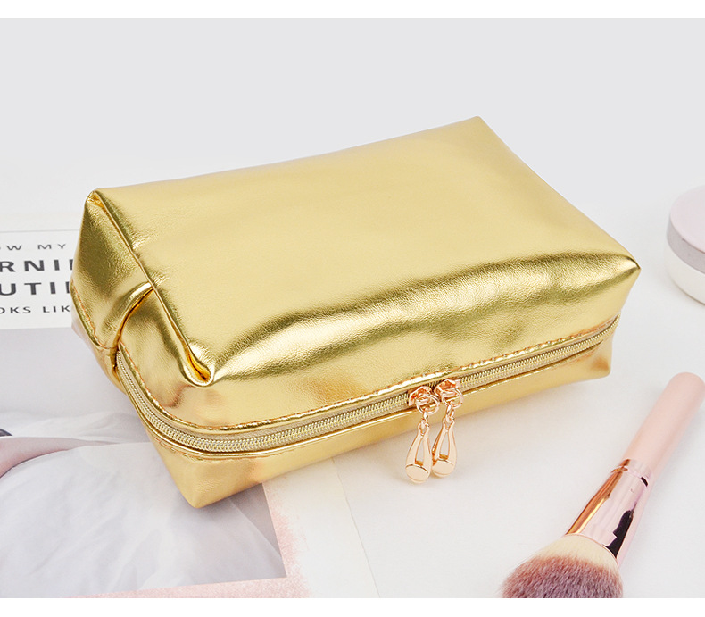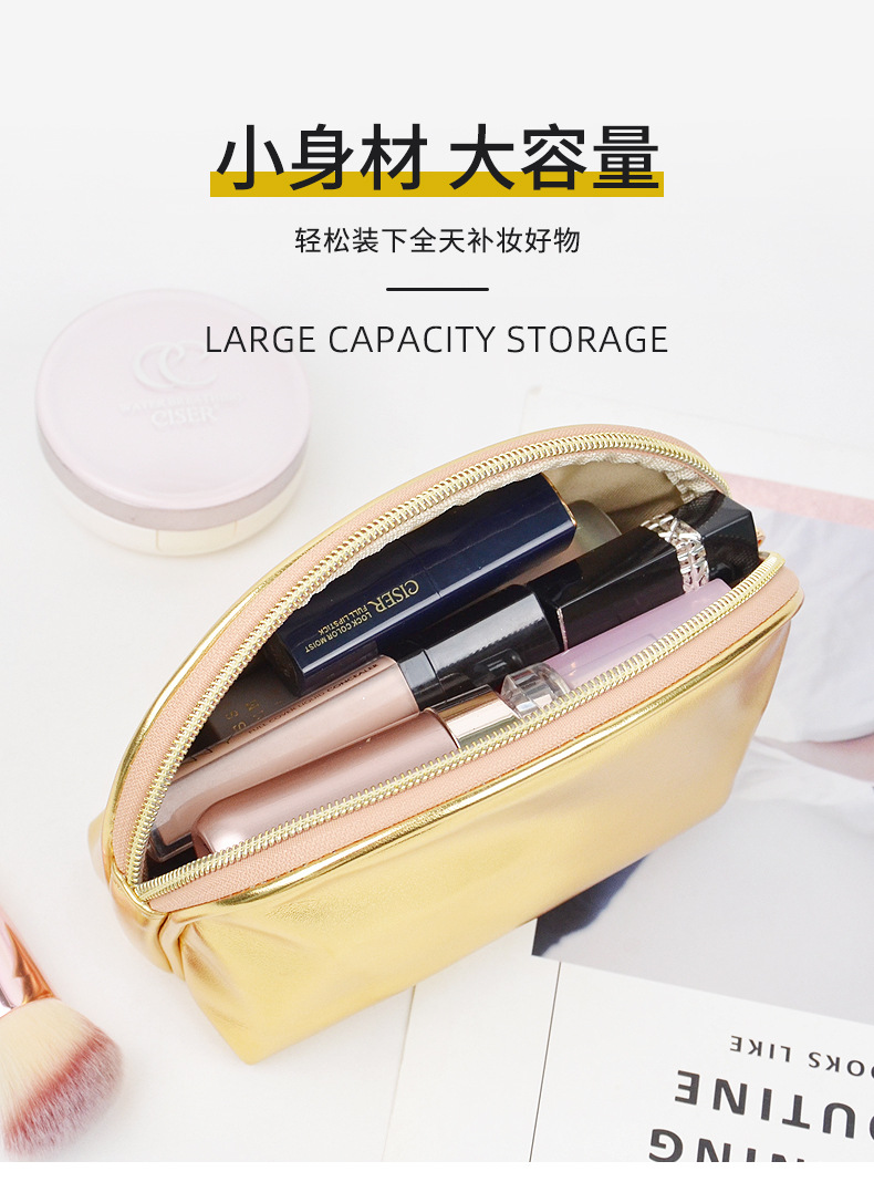 金色闪亮全pu质感手拿化妆包 高颜值轻奢简约便携收纳整理化妆袋
