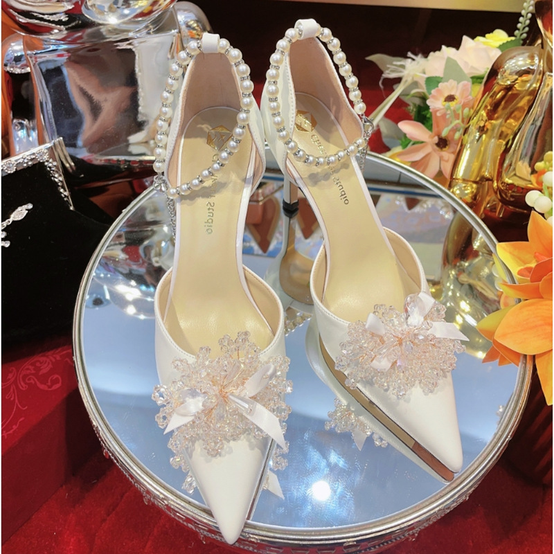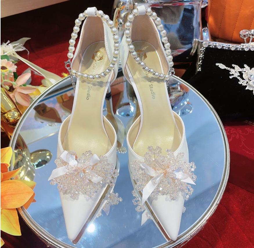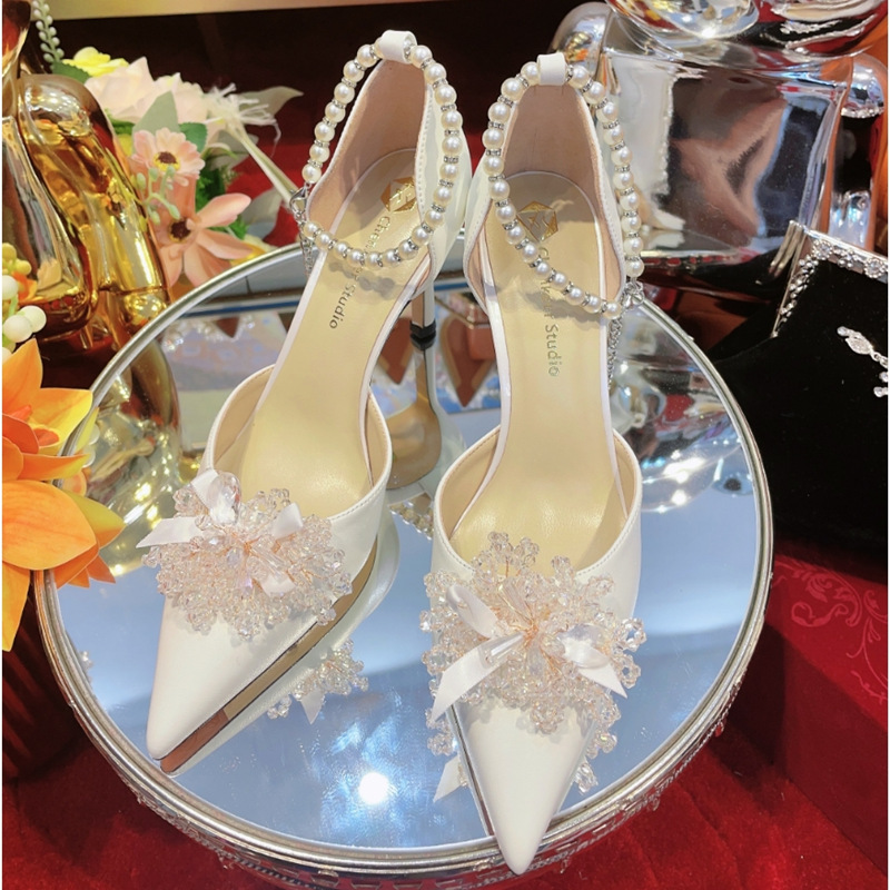 프랑스 웨딩 신발 Xiuhe 메인 웨딩 원피스 중공 신부 신발 피곤하지 않은 발 2023 새로운 흰색 하이힐 스틸레토 힐스토어 가기