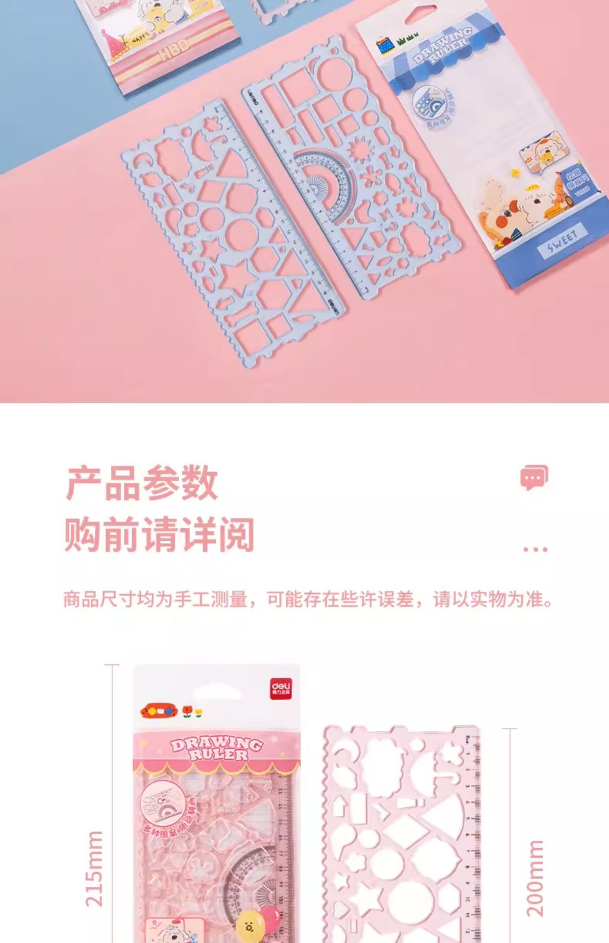 델리 다기능 드로잉 통치자 손으로 쓴 신문 템플릿 통치자 다양한 모양의 기하학적 통치자 문구 어린이 그림 세트 통치자스토어 가기