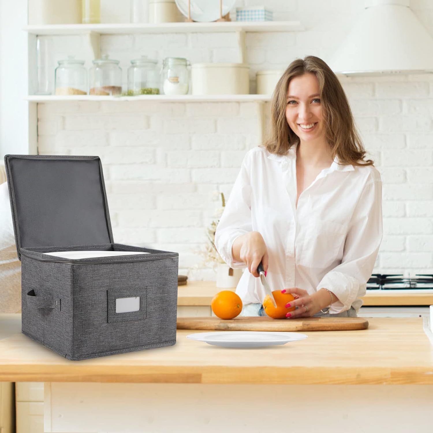 아마존 새로운 휴대용 저장 상자 식기 접시 와인 유리 저장 상자 접이식 저장 상자 방진 조직 상자