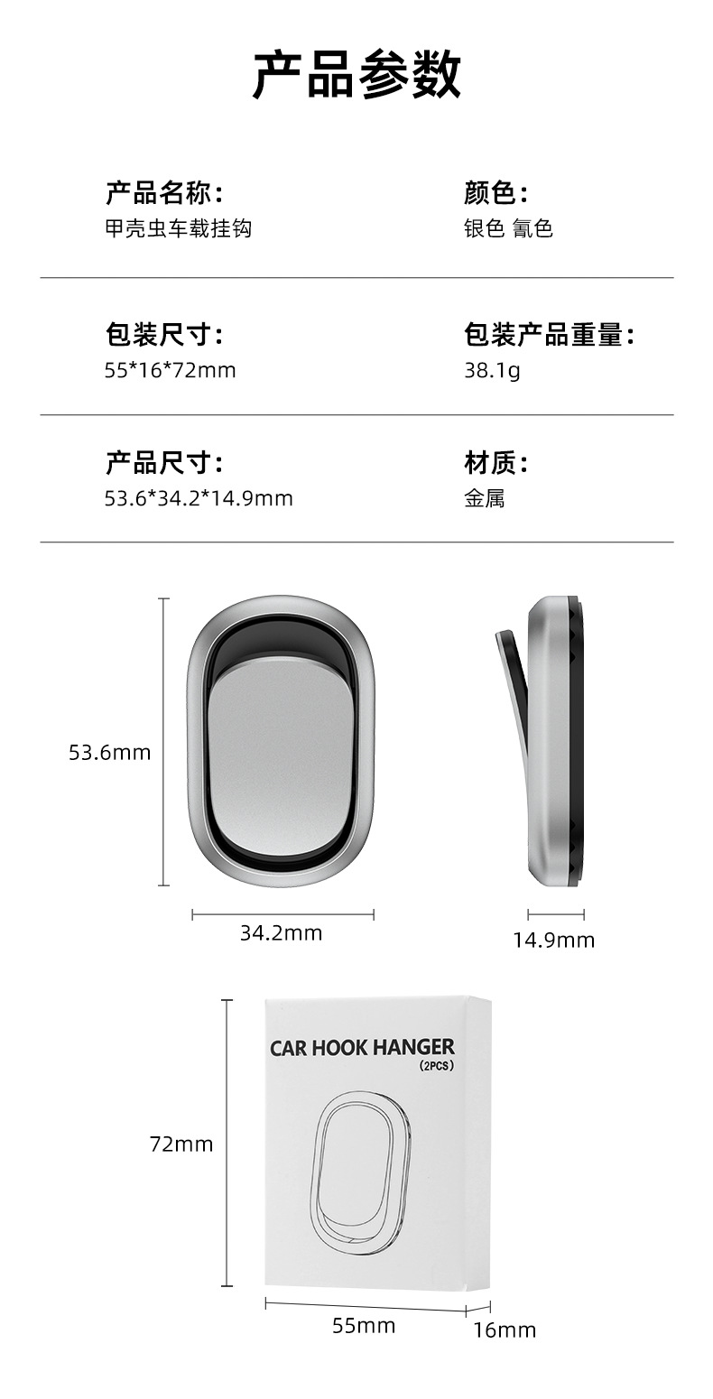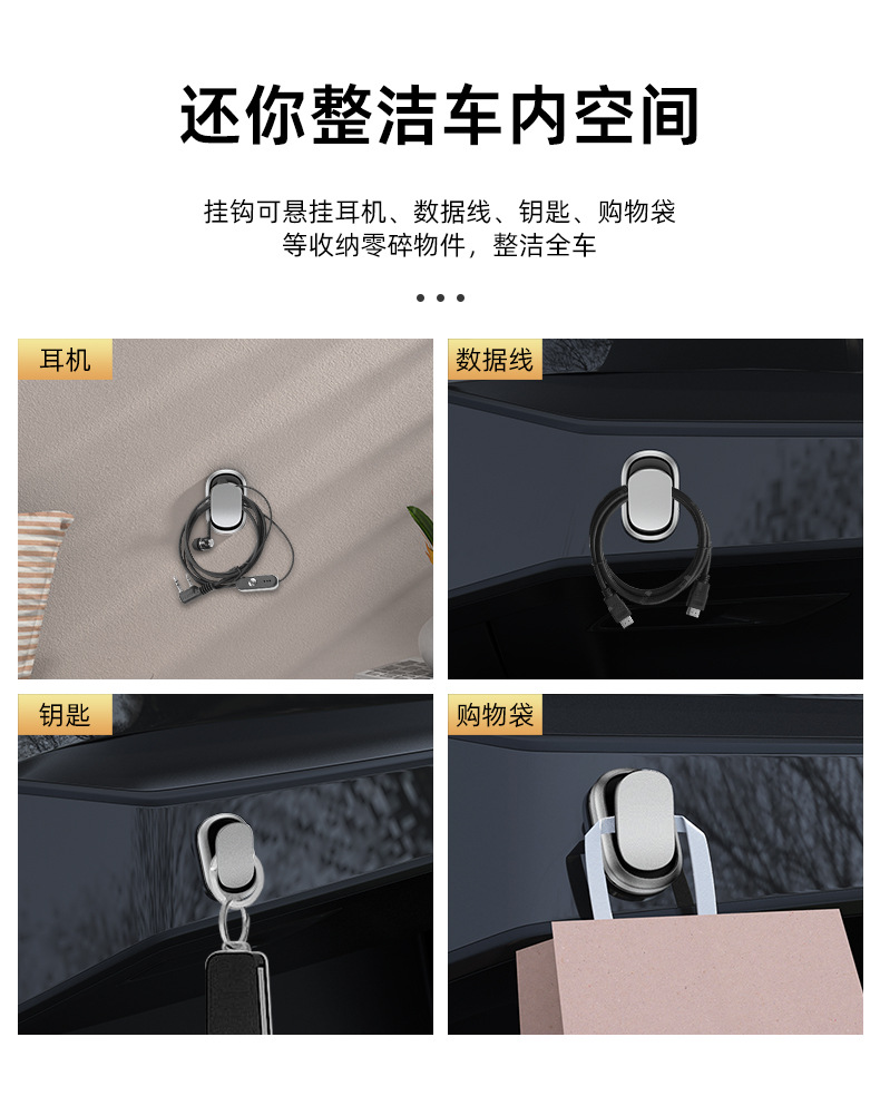 자동차용 투명 후크, 뒷좌석 등받이용, 차량용품, 접착식 다기능 수납 후크, 합금 소재