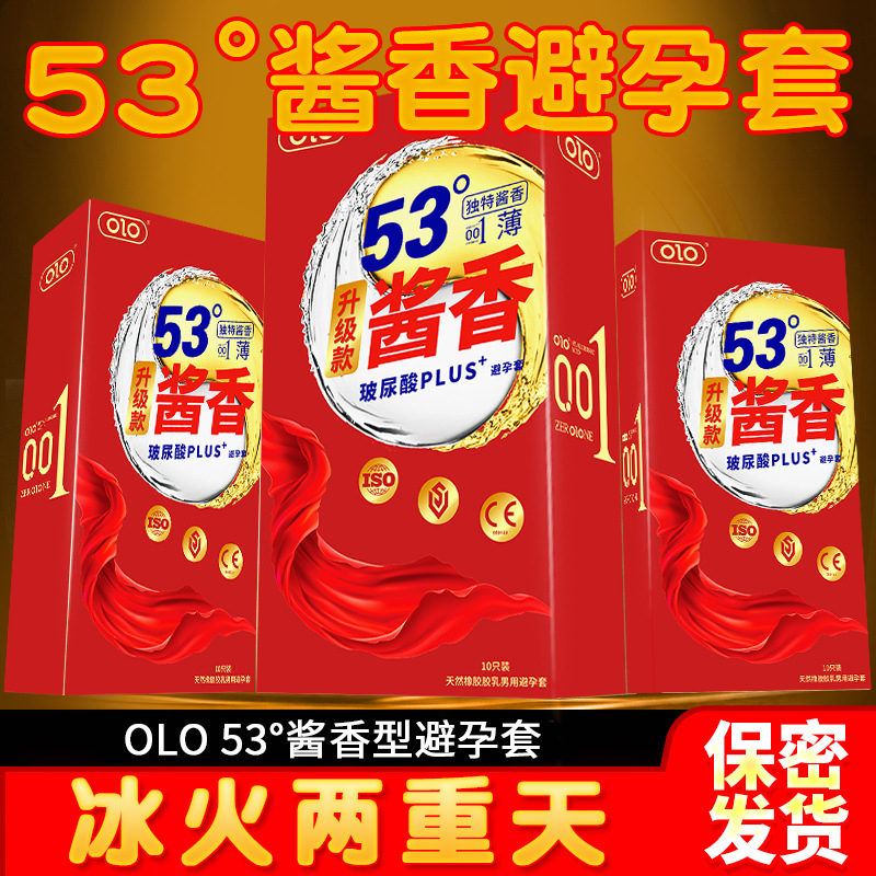 OLO 소스 맛 53 ° 히알루 론산 콘돔 001 초박형 광택 10 팩 천연 라텍스 콘돔