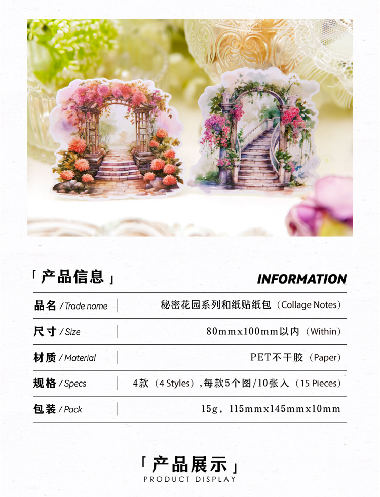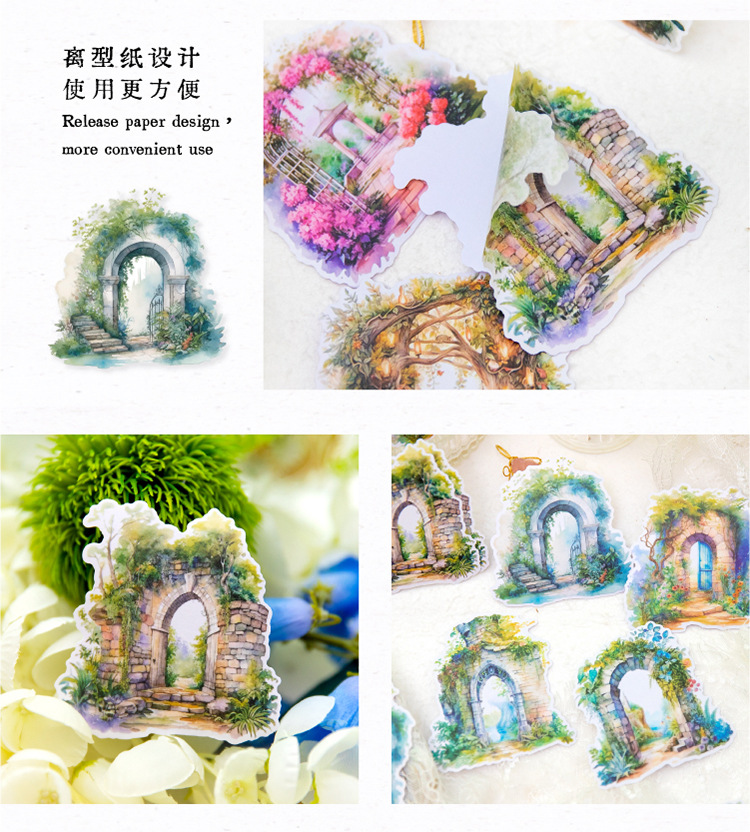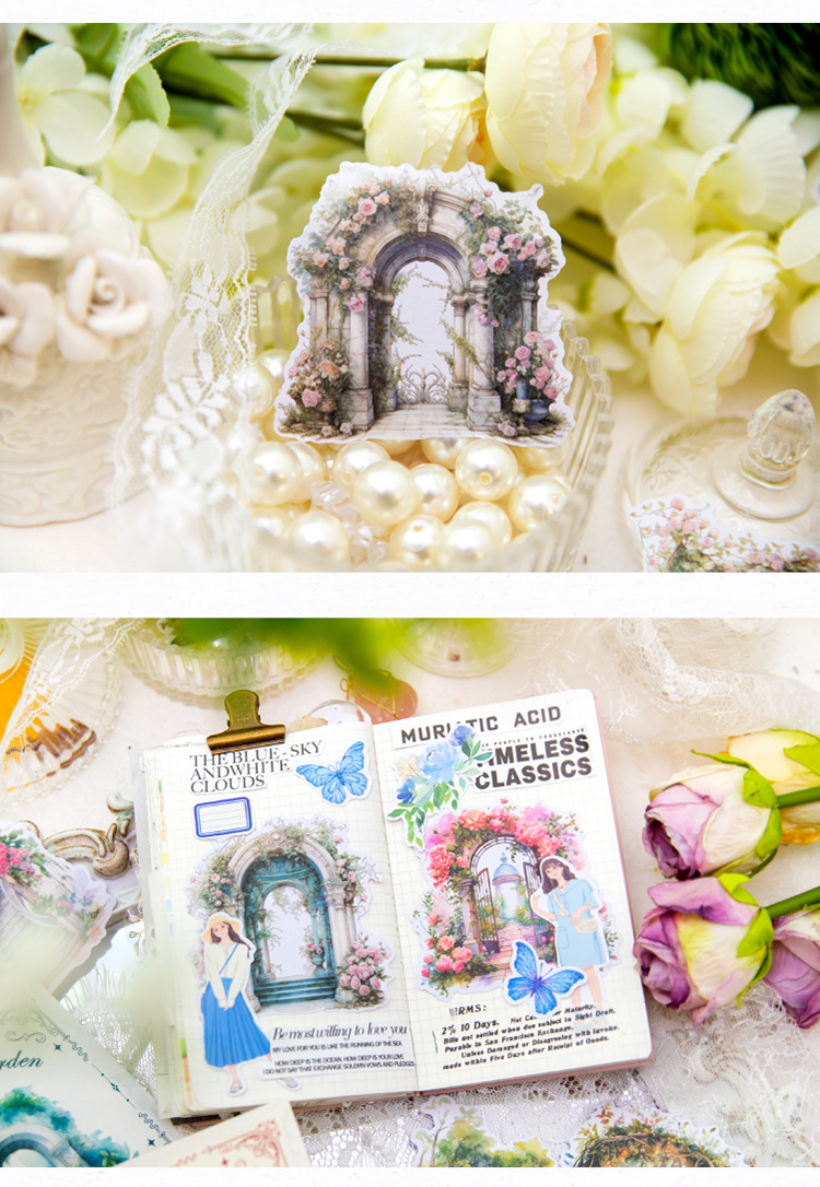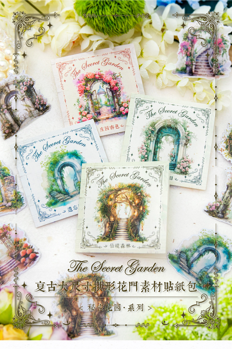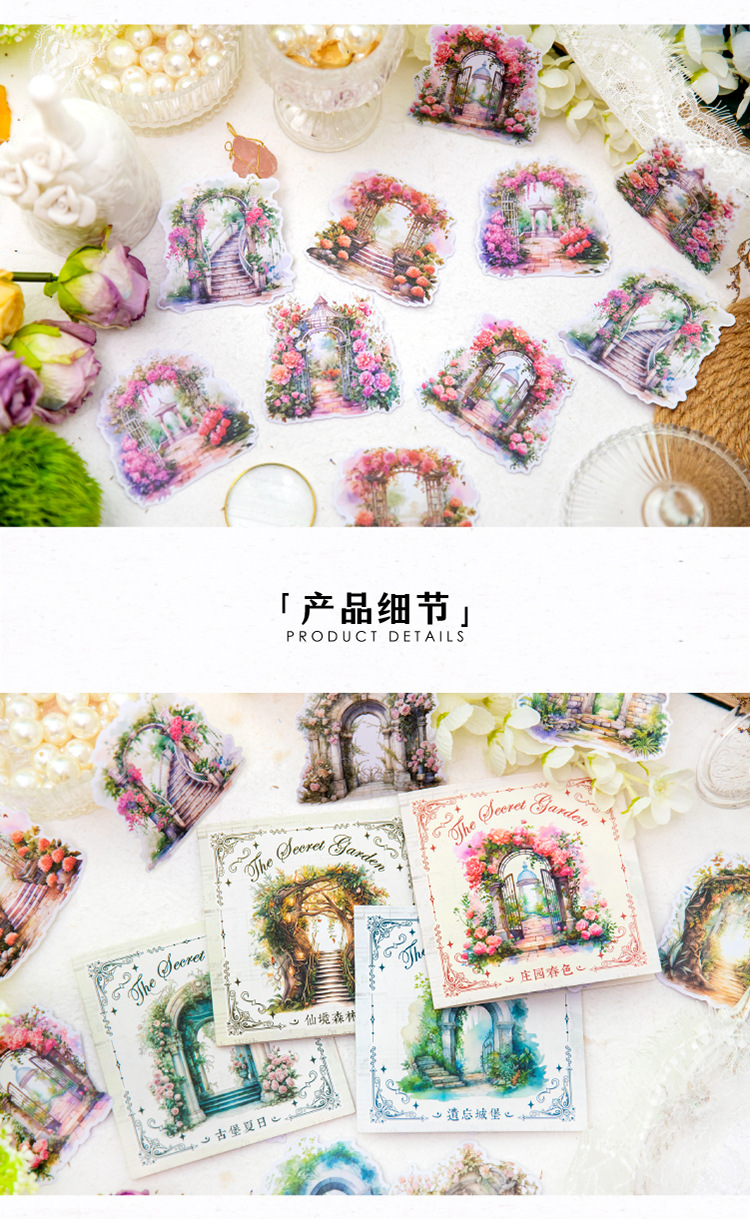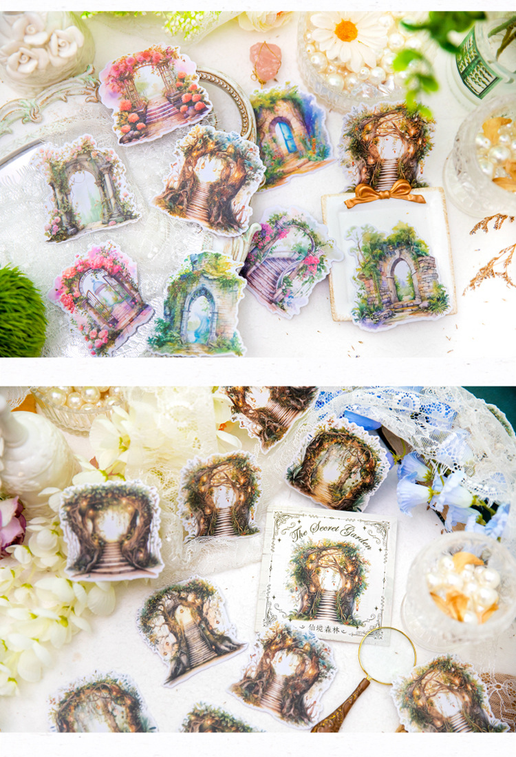 Yanji 비밀 정원 시리즈 및 종이 스티커 팩 크리에이티브 Ins 목가적 인 스타일 손 계정 장식 콜라주 조경 스티커스토어 가기