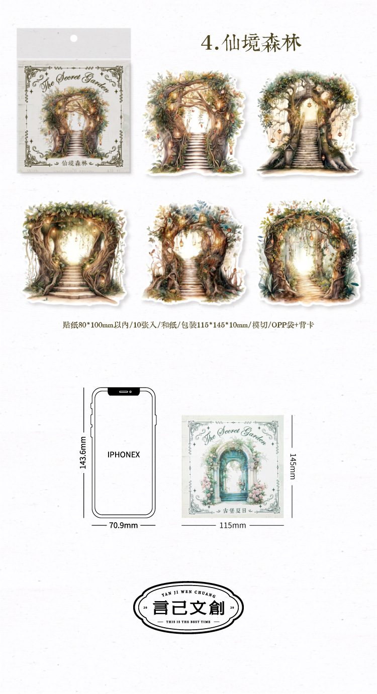 Yanji 비밀 정원 시리즈 및 종이 스티커 팩 크리에이티브 Ins 목가적 인 스타일 손 계정 장식 콜라주 조경 스티커