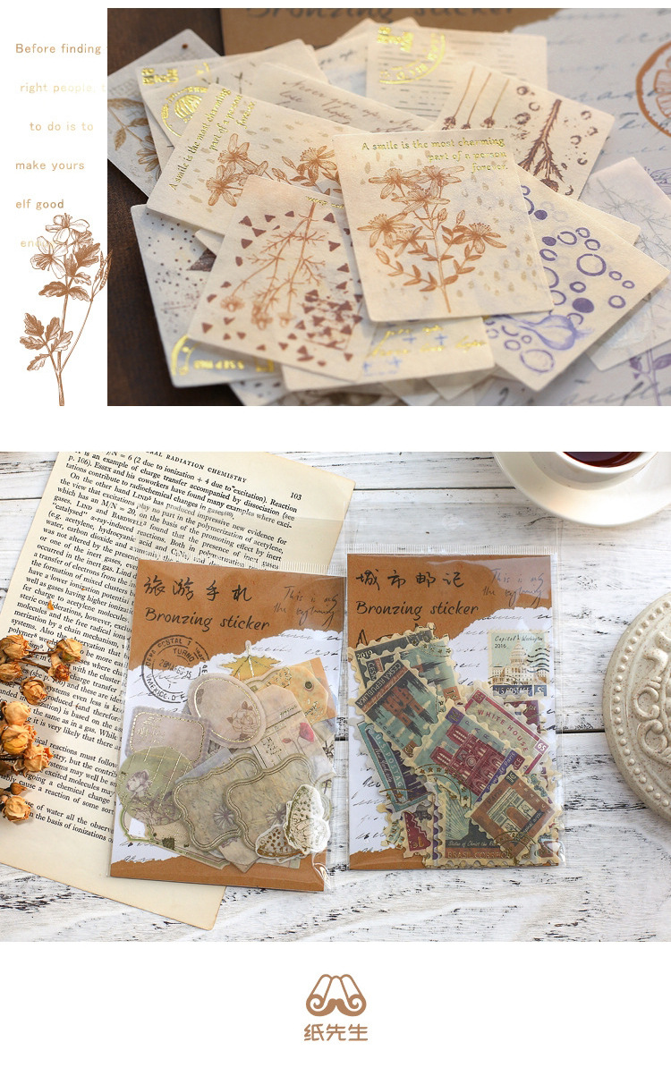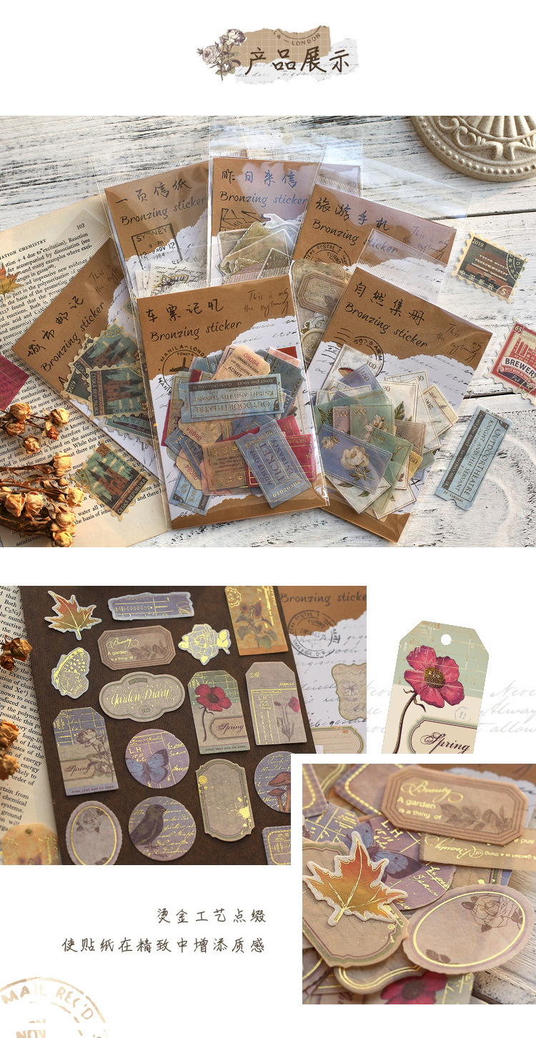 Shihe 원격 도금 스티커 패키지 빈티지 티켓 스탬프 공장 영국 DIY 장식 저널 소재 콜라주스토어 가기