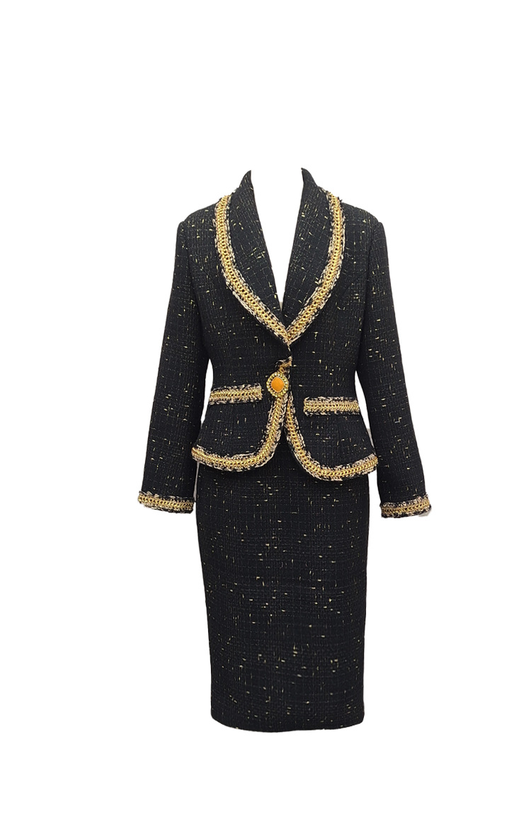 플러스 사이즈 여성 의류 고급 샤넬 스타일 트위드 세트 통통녀 슬리밍 겨울 새로운 프랑스 투피스 세트 1771