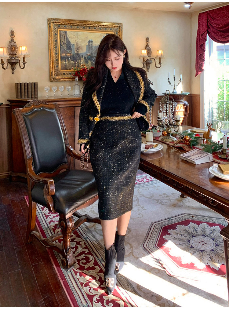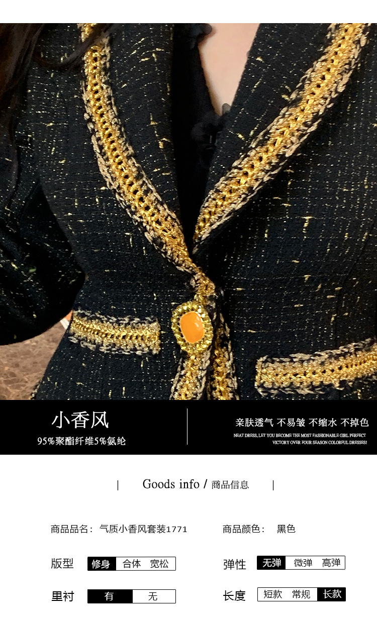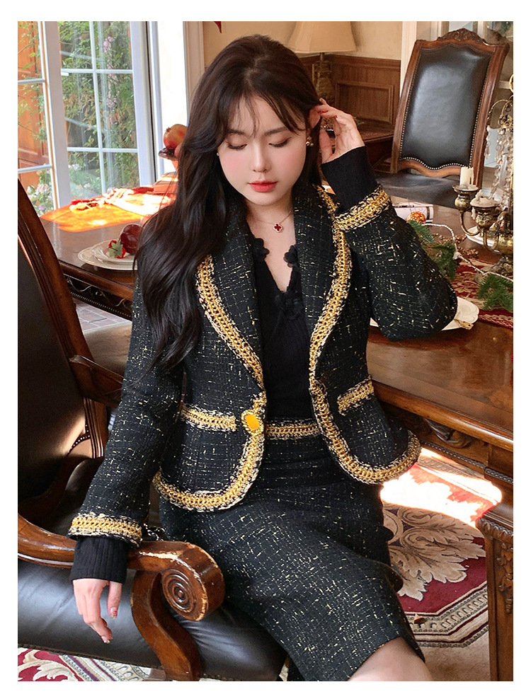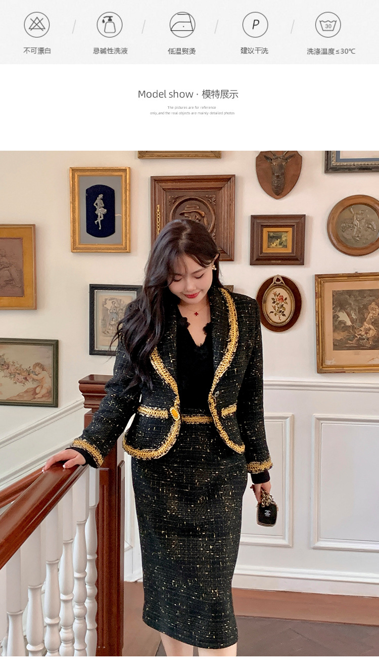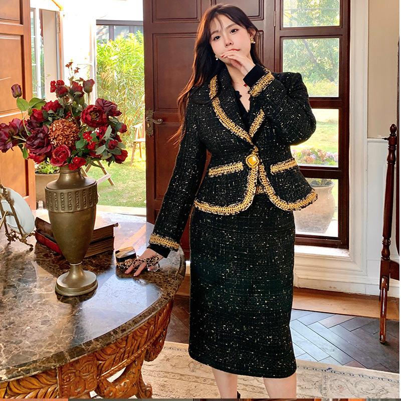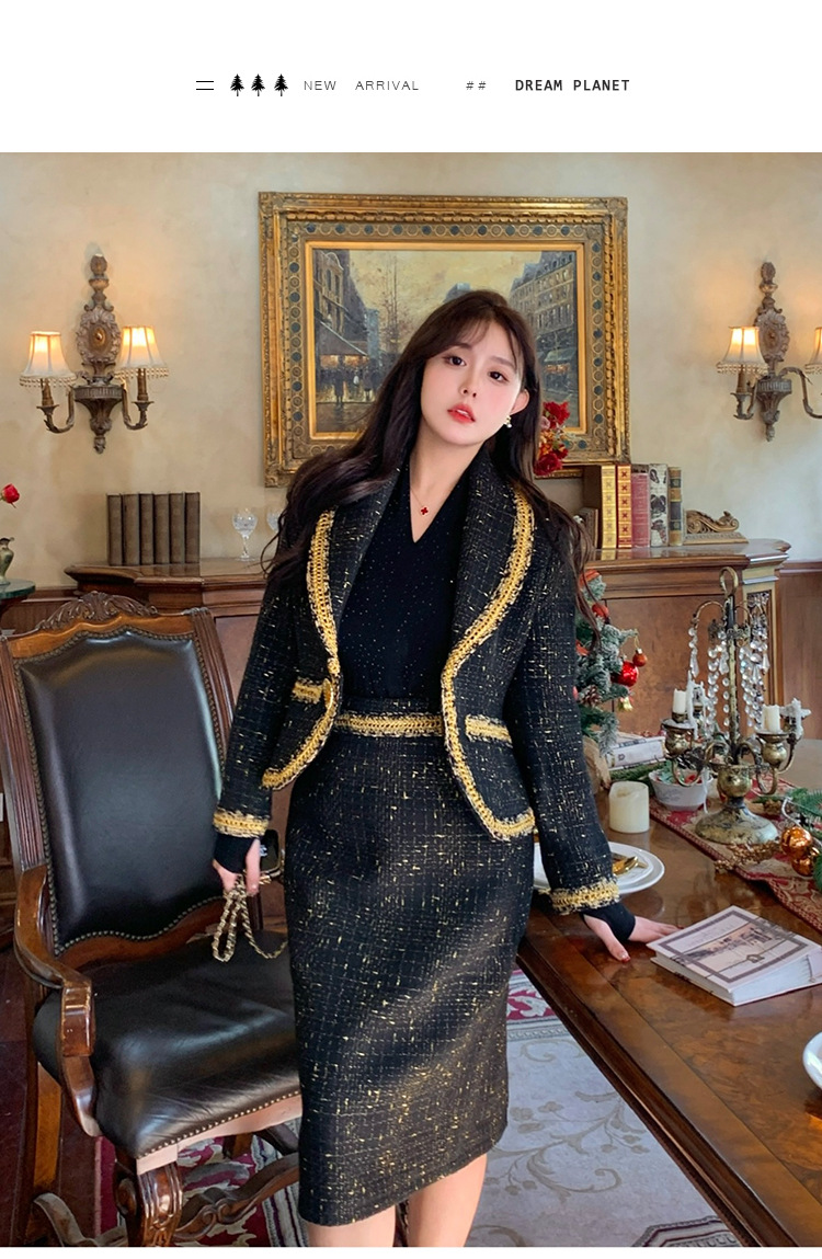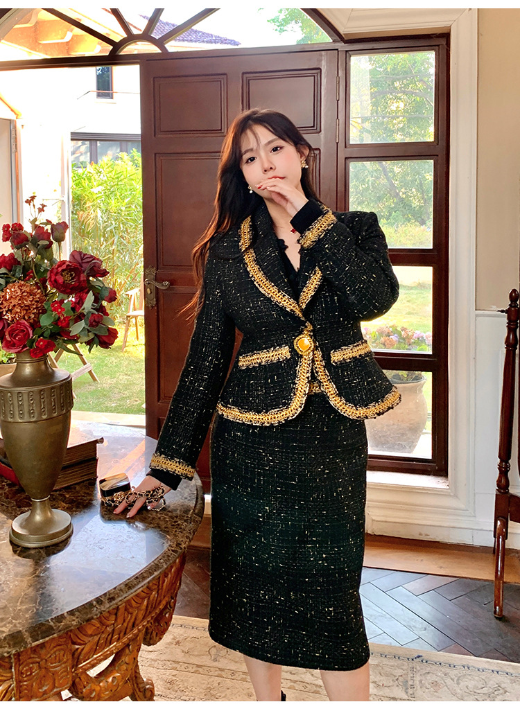 플러스 사이즈 여성 의류 고급 샤넬 스타일 트위드 세트 통통녀 슬리밍 겨울 새로운 프랑스 투피스 세트 1771스토어 가기