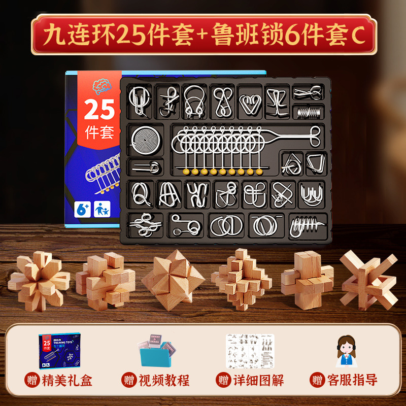 解环25件套:彩盒 单盒尺寸:24.5*31.5*2.5cm 装箱数:40盒/箱