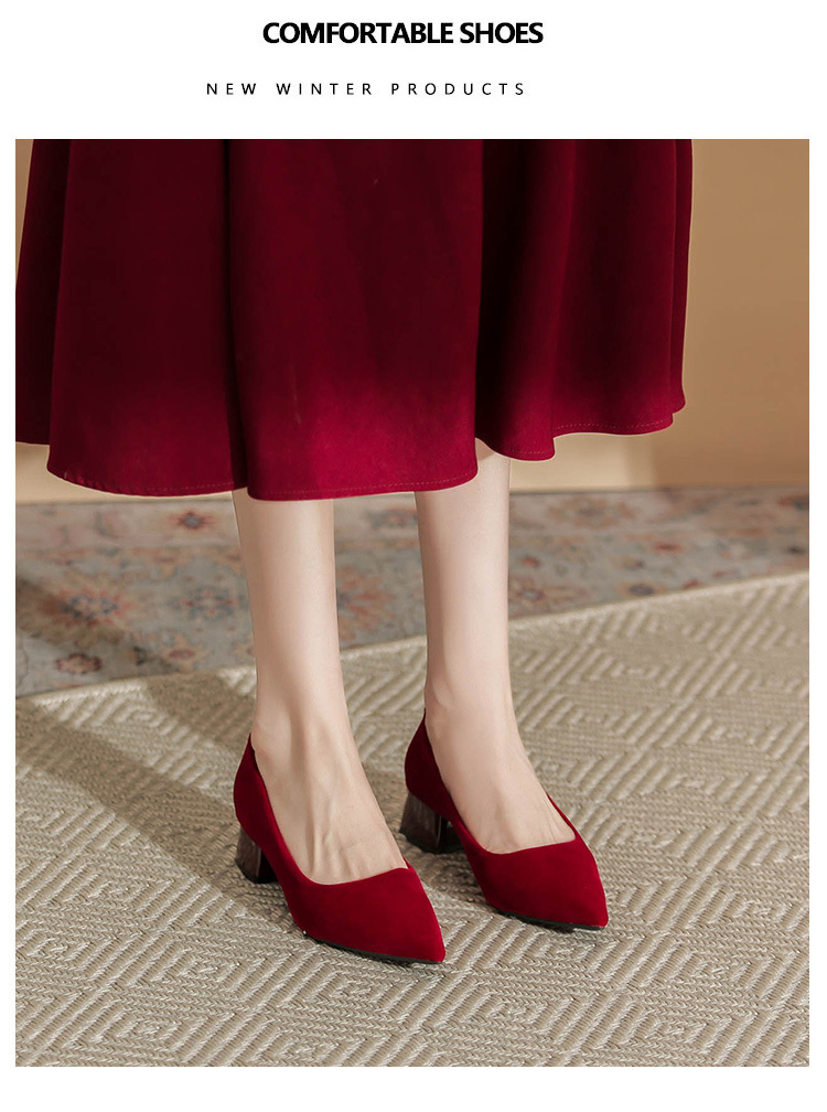X202 청키 힐 지적 전문 OL 통근 인터뷰 작업 신발 우아한 올 매치 2024 뉴