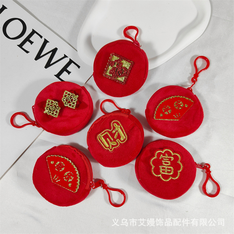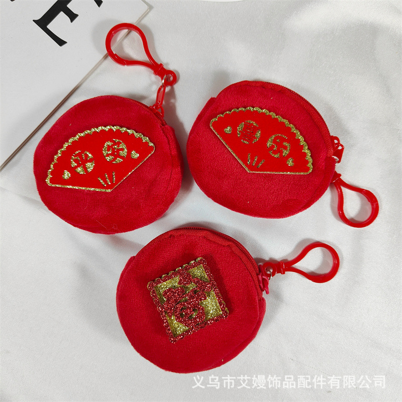 새해 축제 빨간 봉제 동전 지갑 풍부한 평화 행복한 동전 저장 작은 가방 휴일 선물 가방
