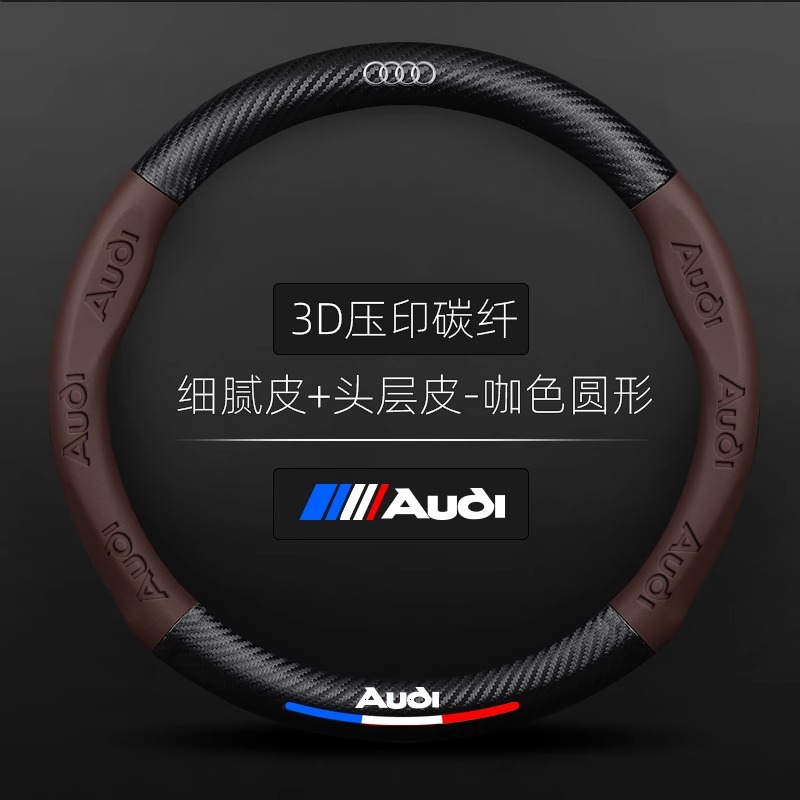 • 3D 양각 탄소 섬유 가죽 + 3 색 라벨 + 아우디 라벨 + 다크 브라운 + 라운드