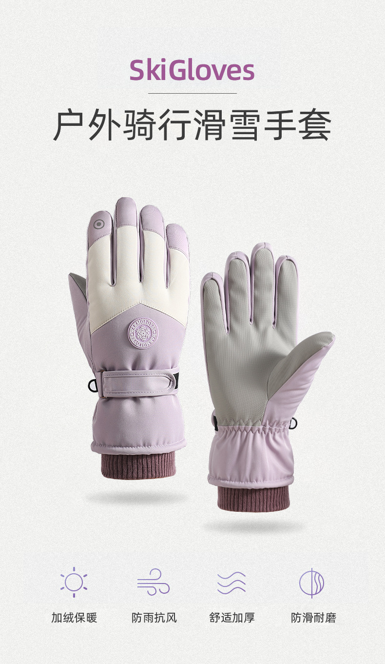 스키 장갑 여성의 겨울 기모 두꺼운 야외 승마 오토바이 면장갑 남성용 방수 방한 바람