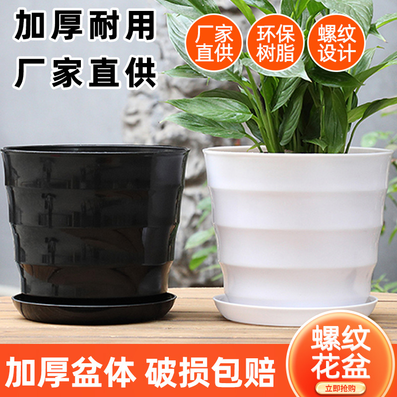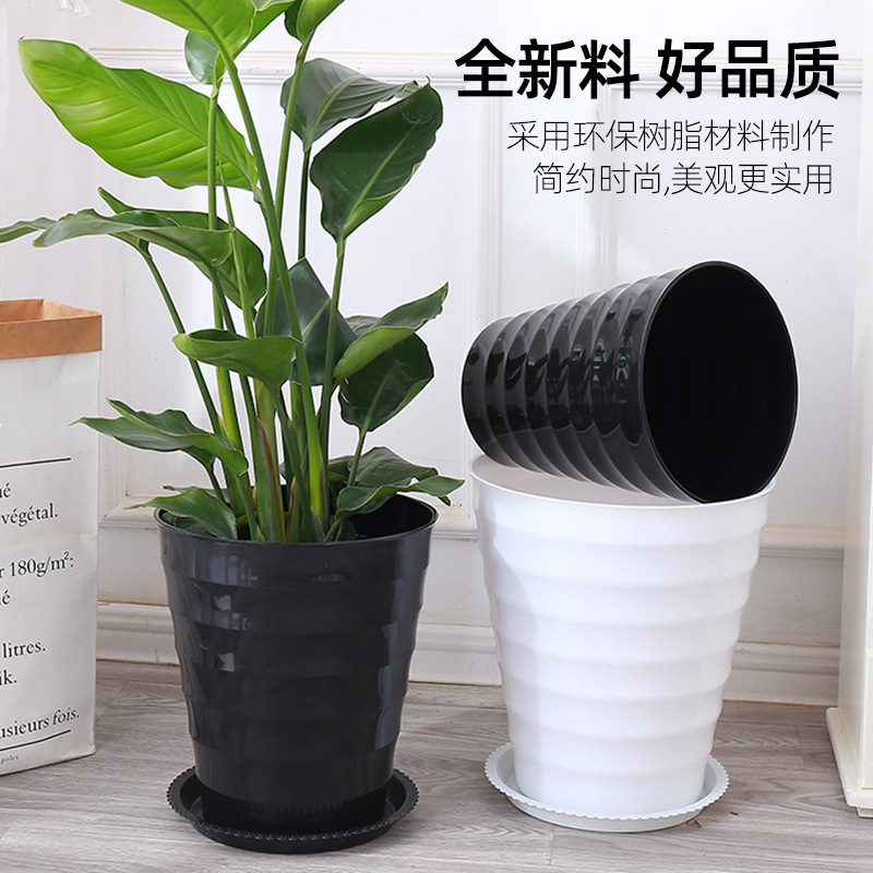 대형 실 화분 두껍게 흰색 검은 모방 도자기 수지 화분 트레이 분재 식물 큰 플라스틱 분지