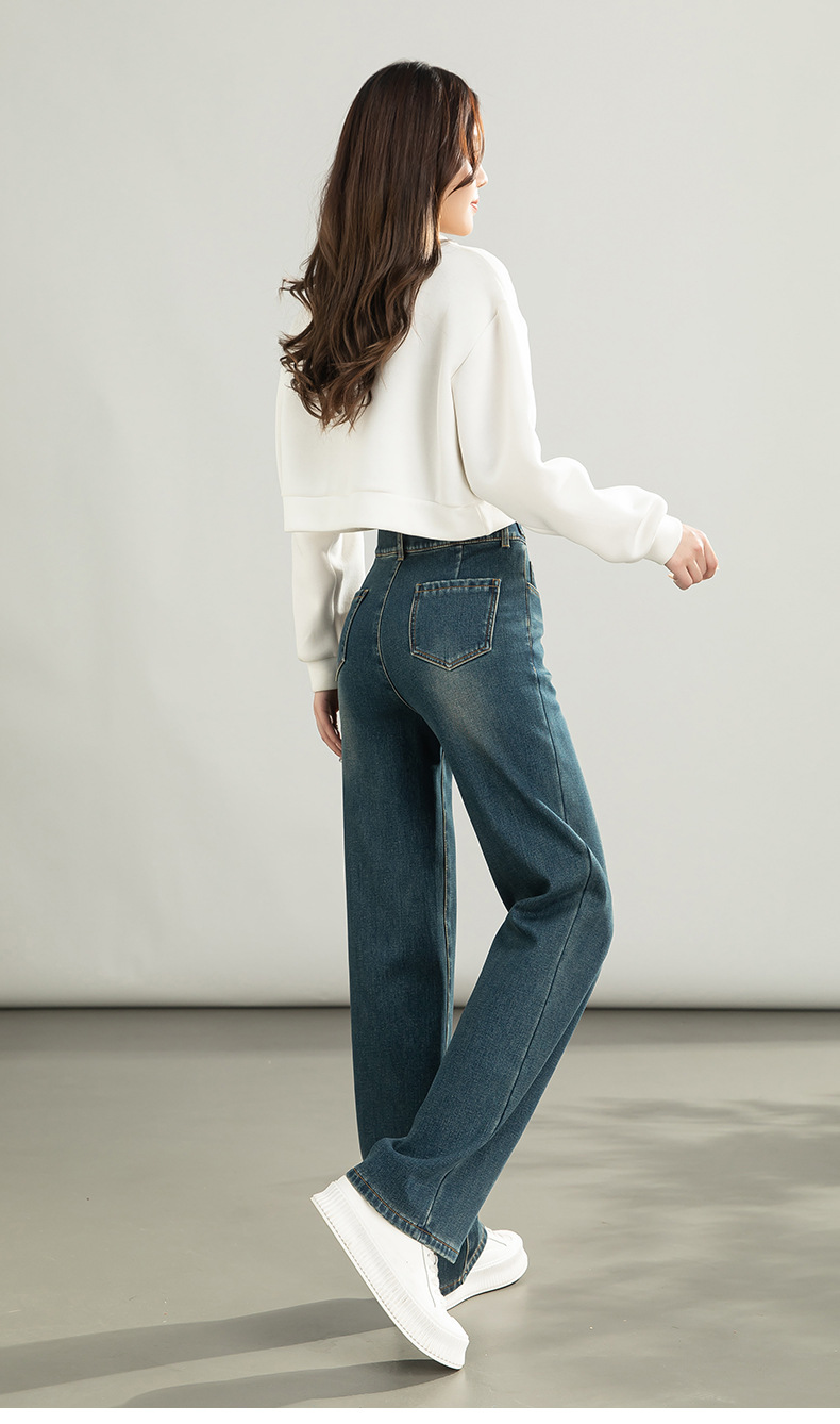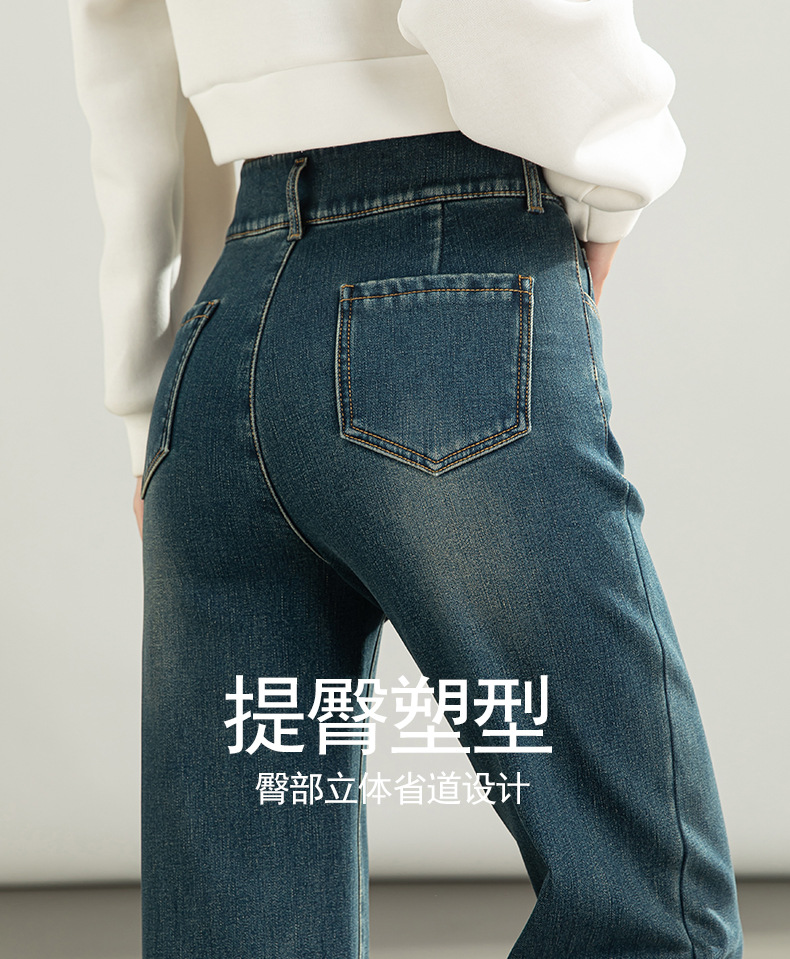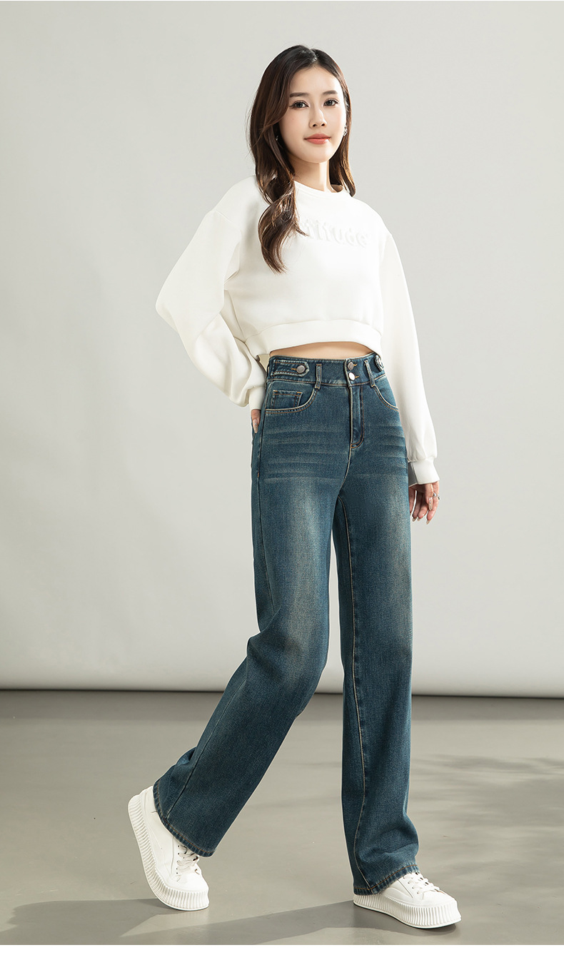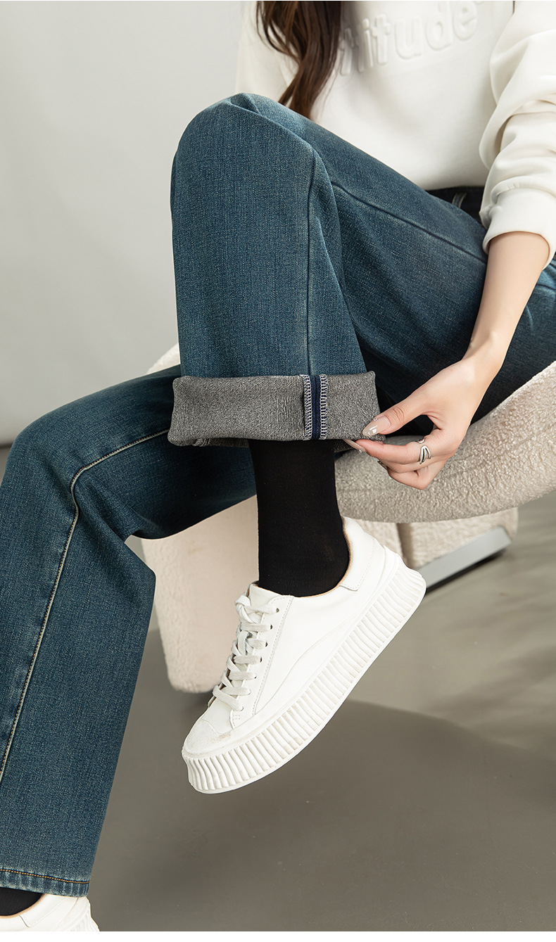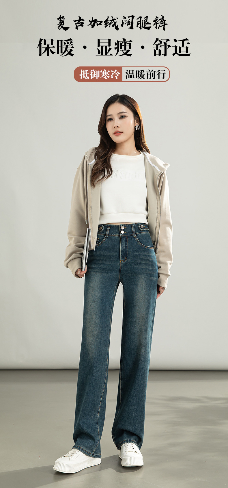 겨울 새로운 높은 허리 유럽과 미국 플러스 벨벳 따뜻한 걸레 바지 넓은 다리 바지 2023 여성을위한 세탁 빈티지 청바지 8066스토어 가기