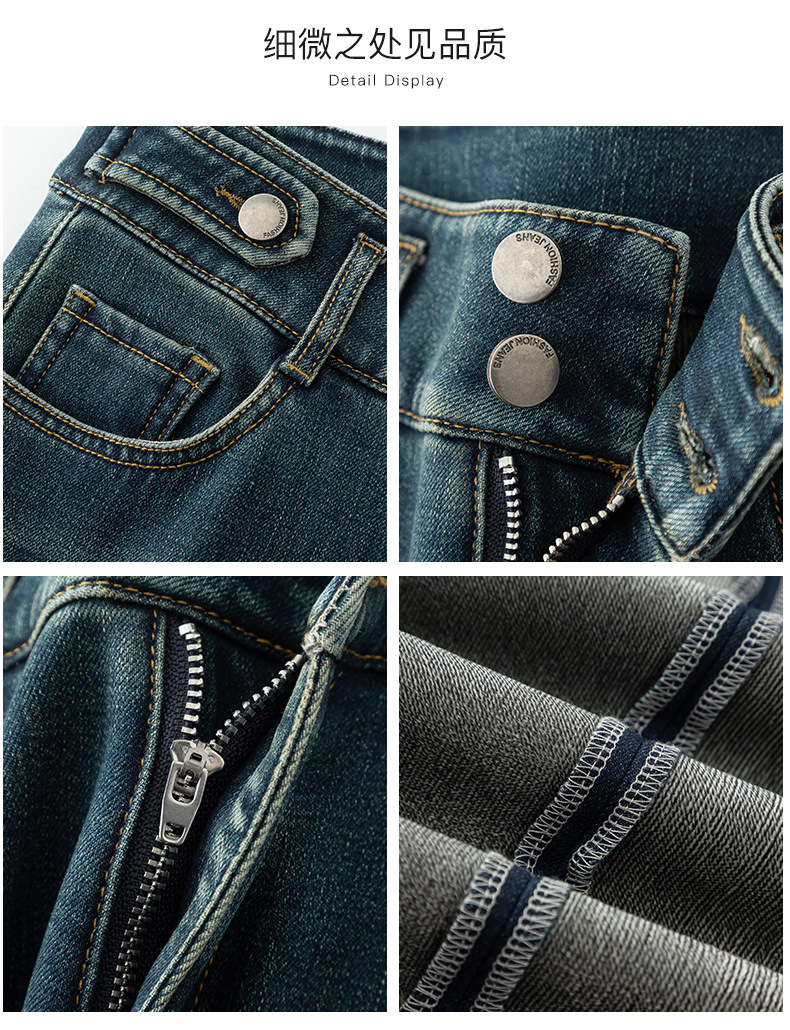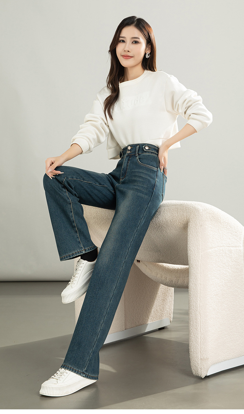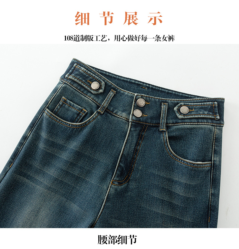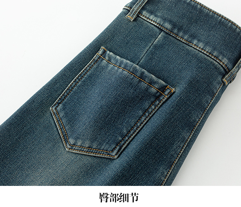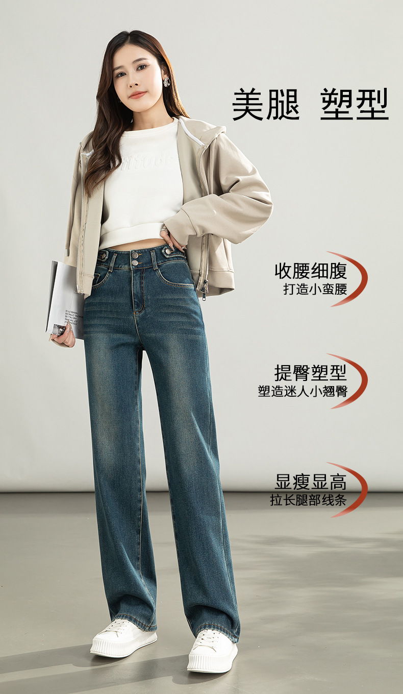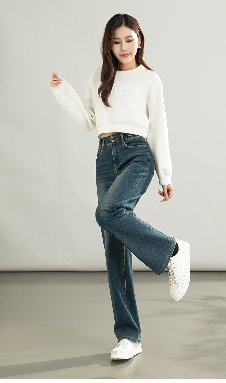 겨울 새로운 높은 허리 유럽과 미국 플러스 벨벳 따뜻한 걸레 바지 넓은 다리 바지 2023 여성을위한 세탁 빈티지 청바지 8066스토어 가기