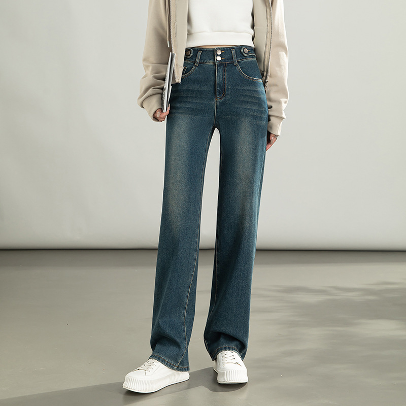 겨울 새로운 높은 허리 유럽과 미국 플러스 벨벳 따뜻한 걸레 바지 넓은 다리 바지 2023 여성을위한 세탁 빈티지 청바지 8066