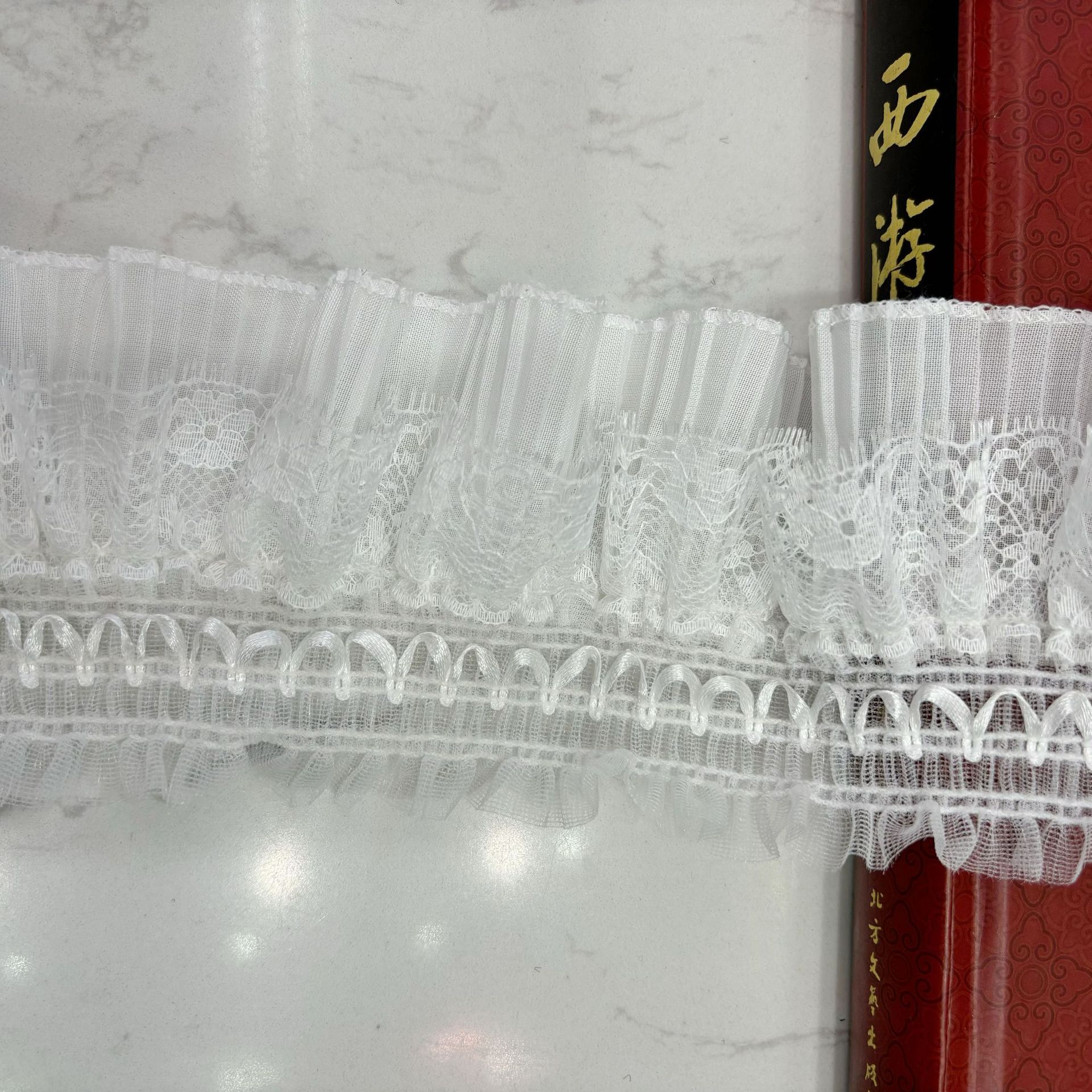 品名:雪纺压褶蕾丝弹力花边 规格:9cm左右
