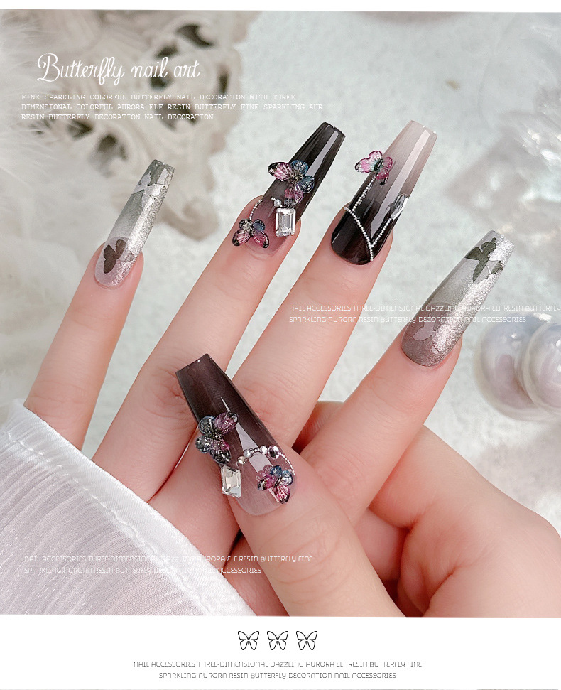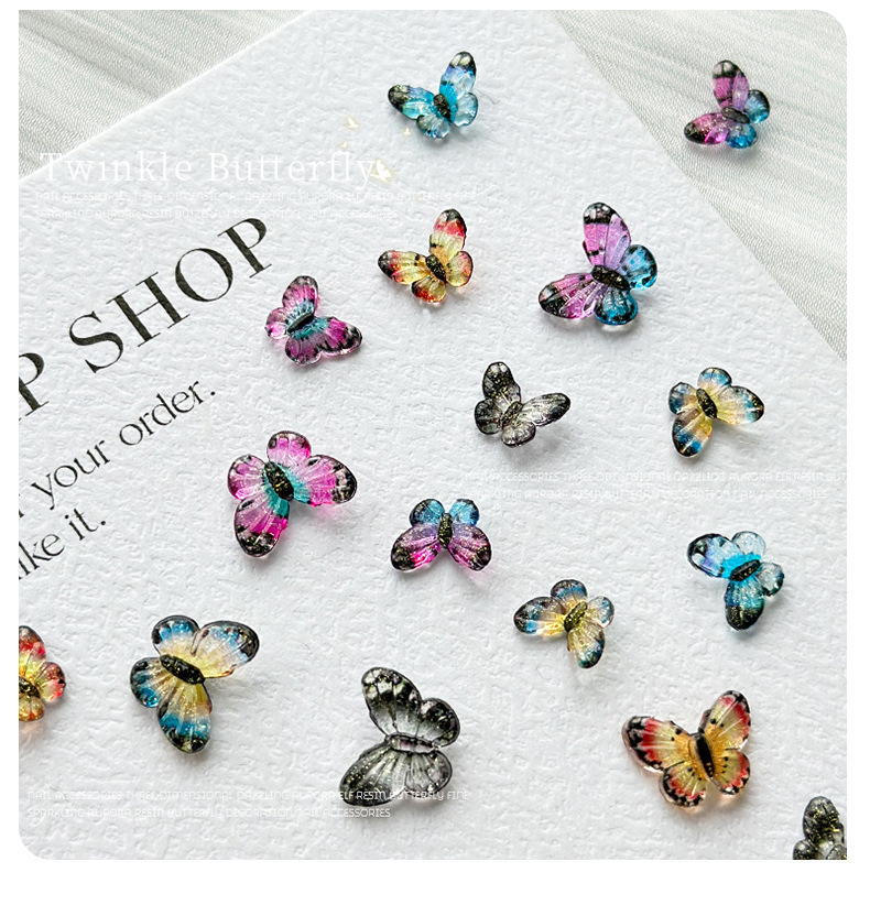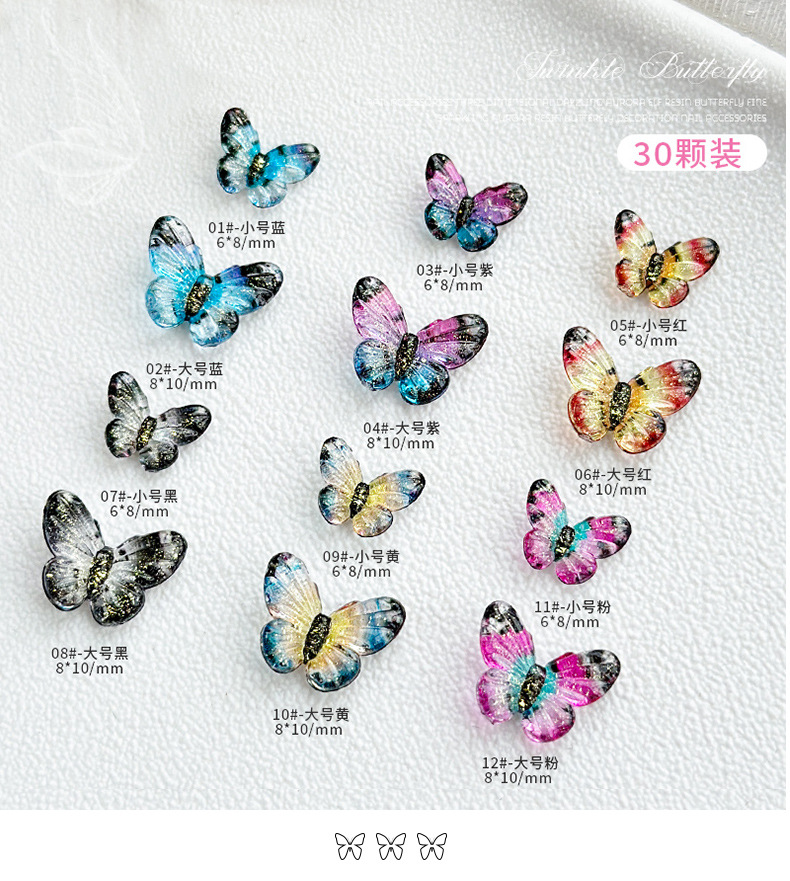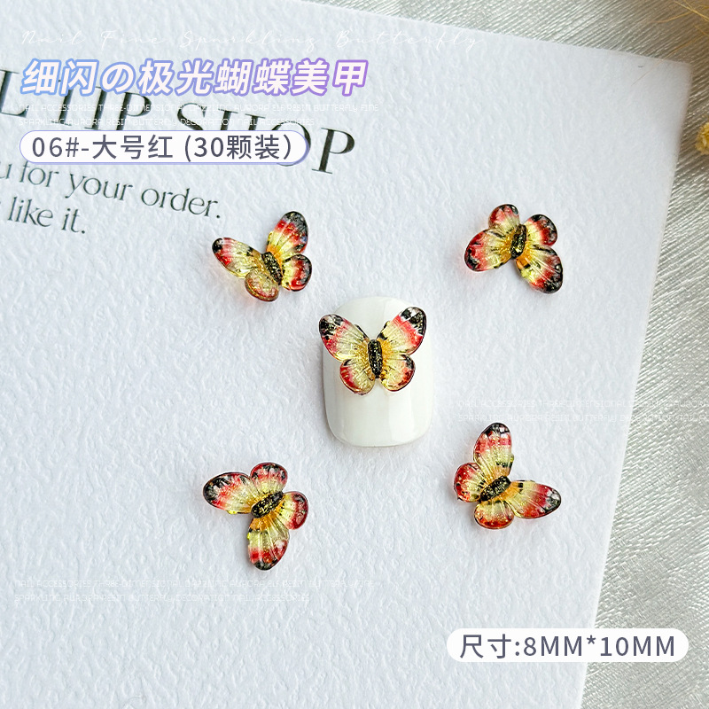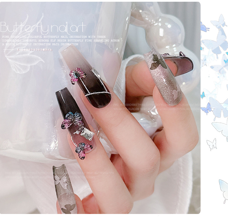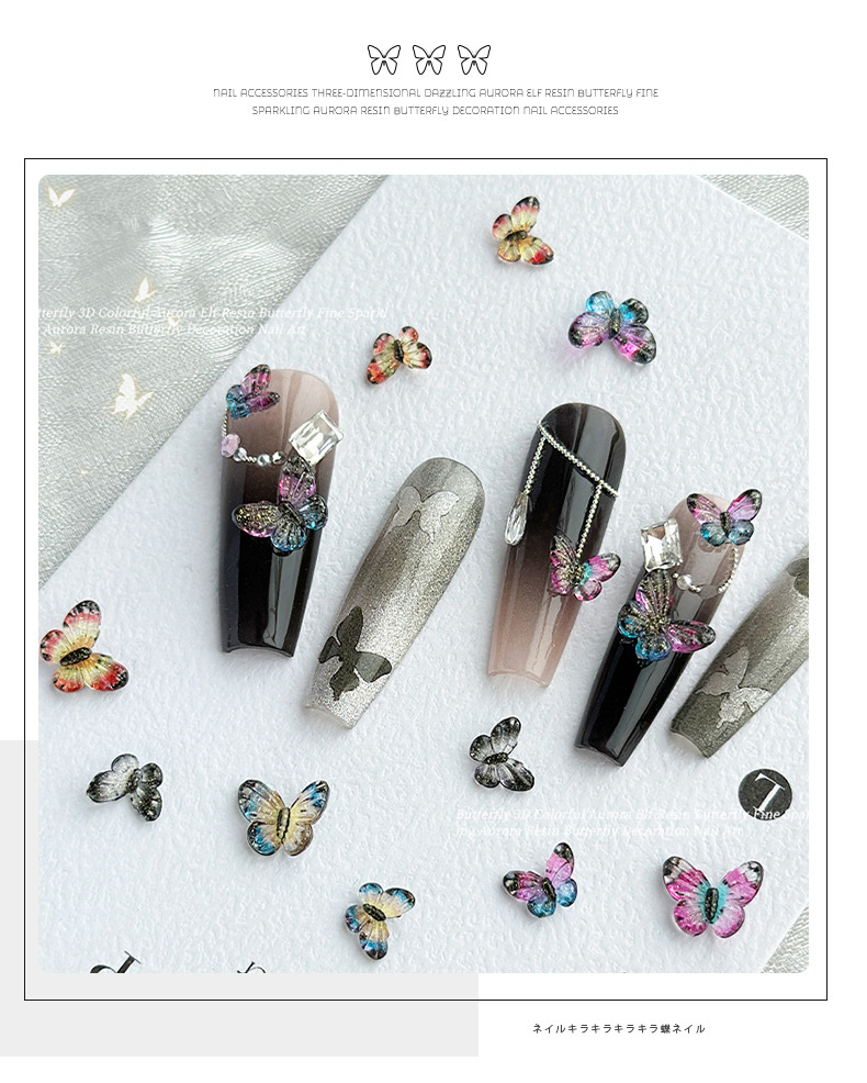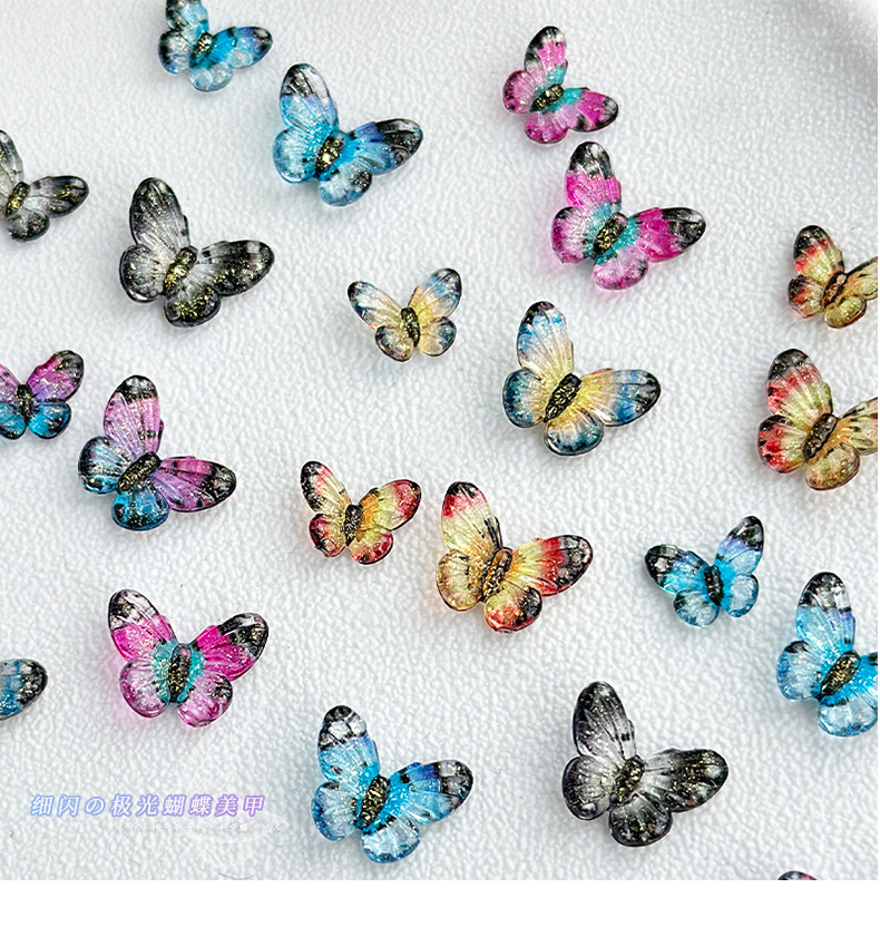 매니큐어 액세서리 온라인 유명 인사 30 가을과 겨울 오로라 나비 멀티 컬러 그라디언트 수지 3 차원 나비 네일 드릴 액세서리스토어 가기