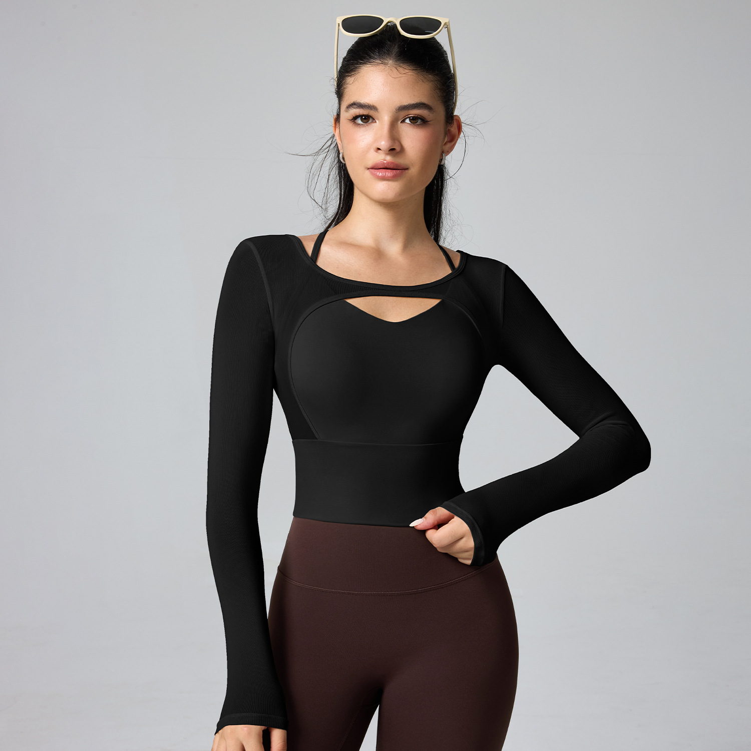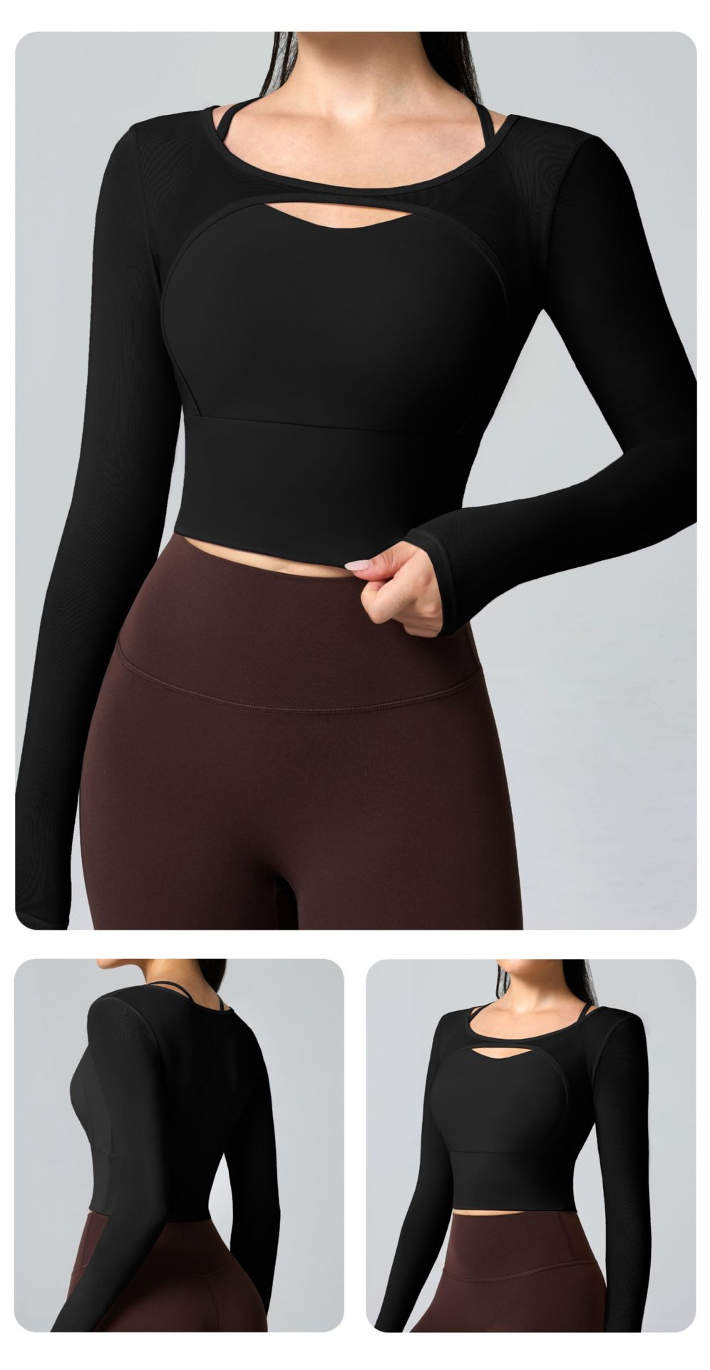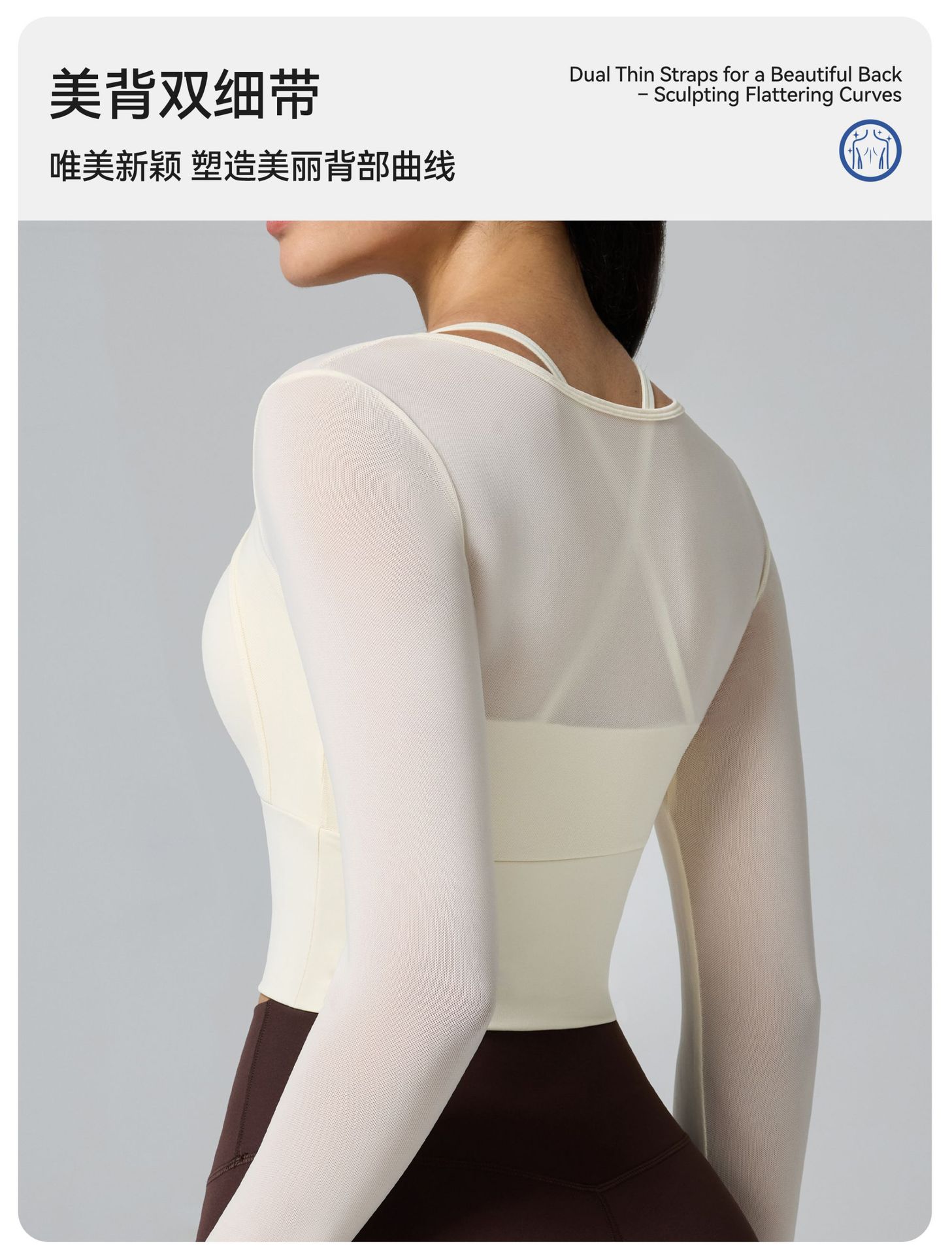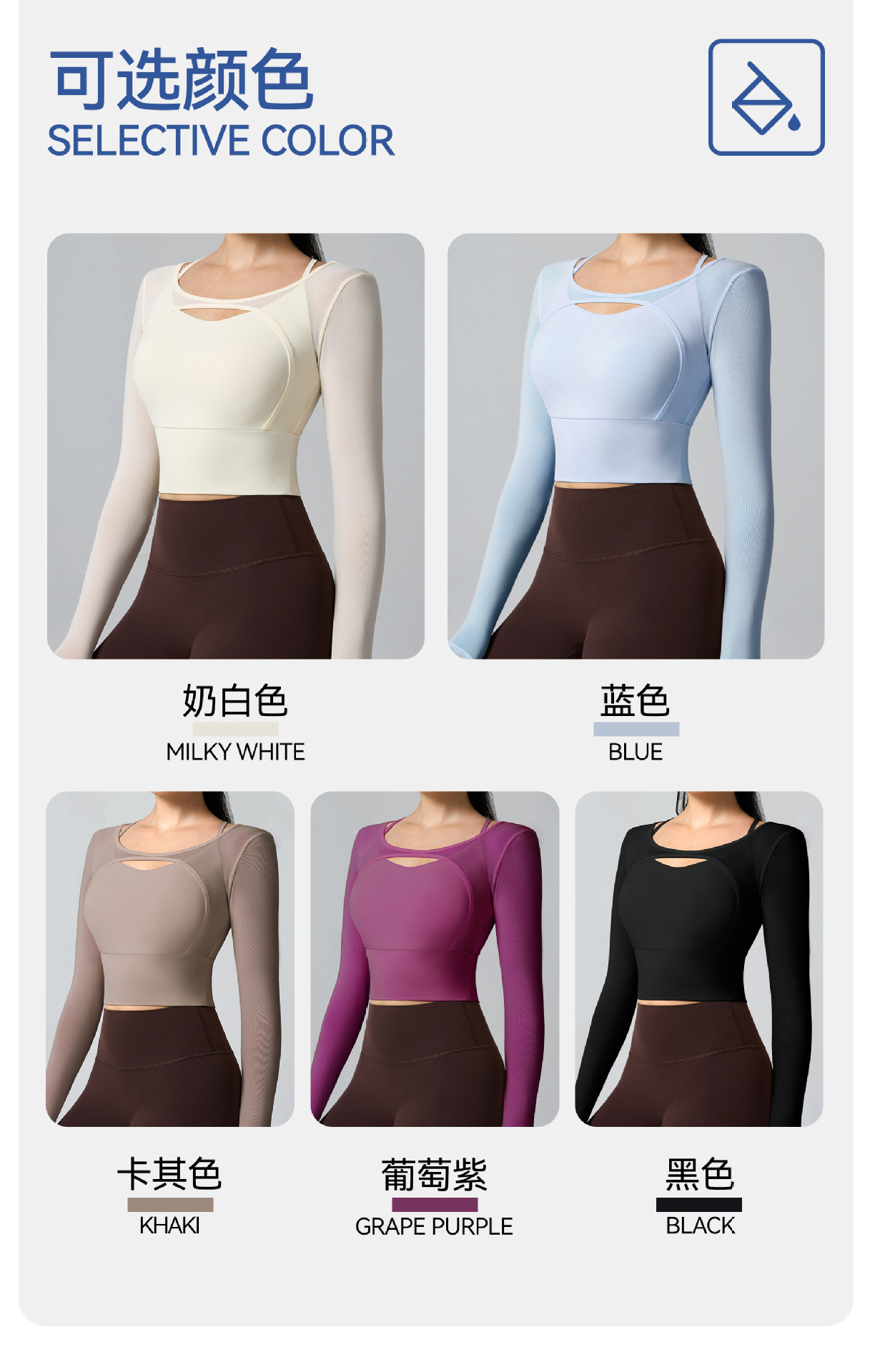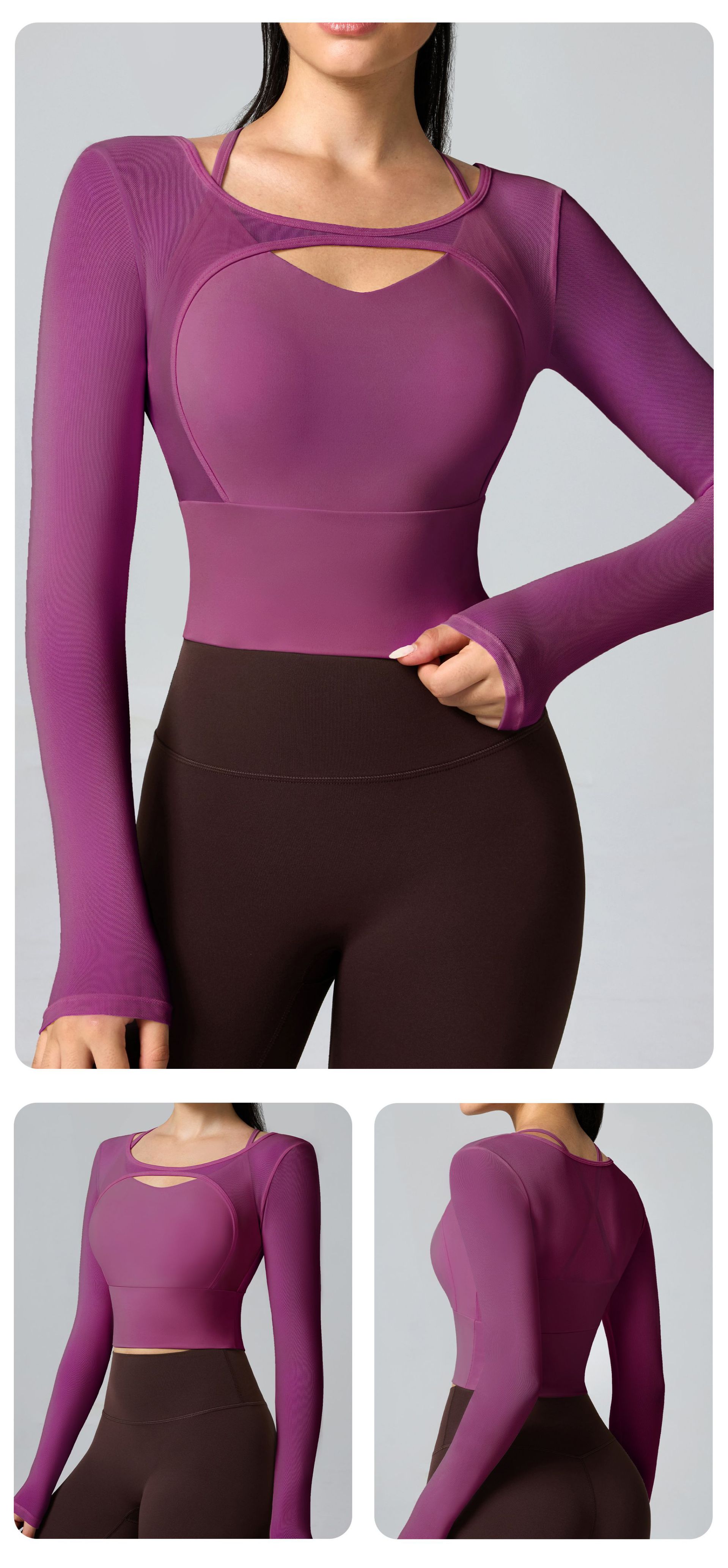 새로운 섹시한 가짜 투피스 메쉬 요가 옷 긴 소매 타이트한 통기성 스포츠 달리기 피트니스 빠른 건조 탑 티셔츠