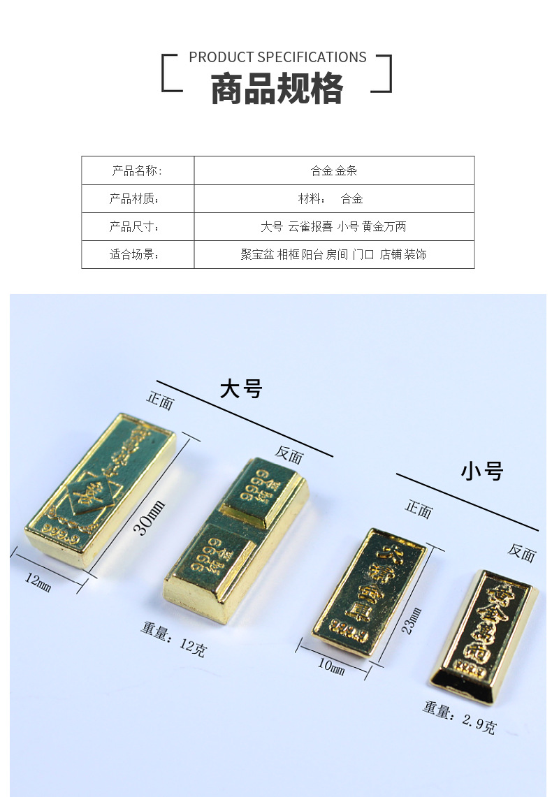 합금 작은 골드 바 BRICS 5 도로 신 푸 루슈 사이 사이 풍수 공예 장식품 도매스토어 가기