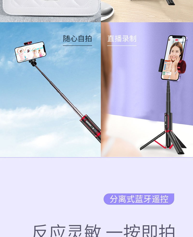 필립스 DLK5100 휴대 전화 셀카 스틱 삼각대 아티팩트 비디오 라이브 지원 회전 블루투스 충전식스토어 가기