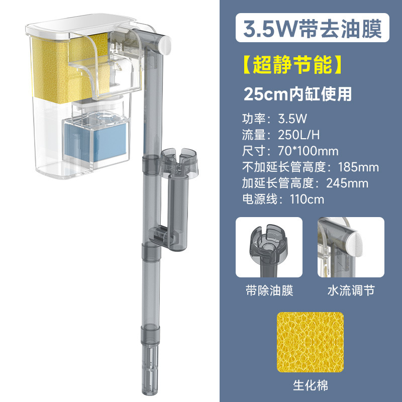 Percale 폭포 어항 필터 작은 벽 장착 가정용 외부 3 대 1 침묵하는 깨끗한 물 탱크 산소 펌프
