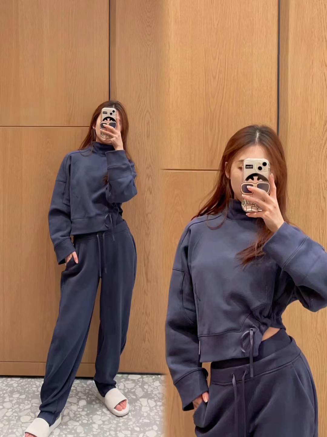 틈새 2023 가을과 겨울 새로운 캐주얼 운동복 짧은 운동복 여성 높은 허리 스포츠 바지 거리 패션 세트 불스토어 가기