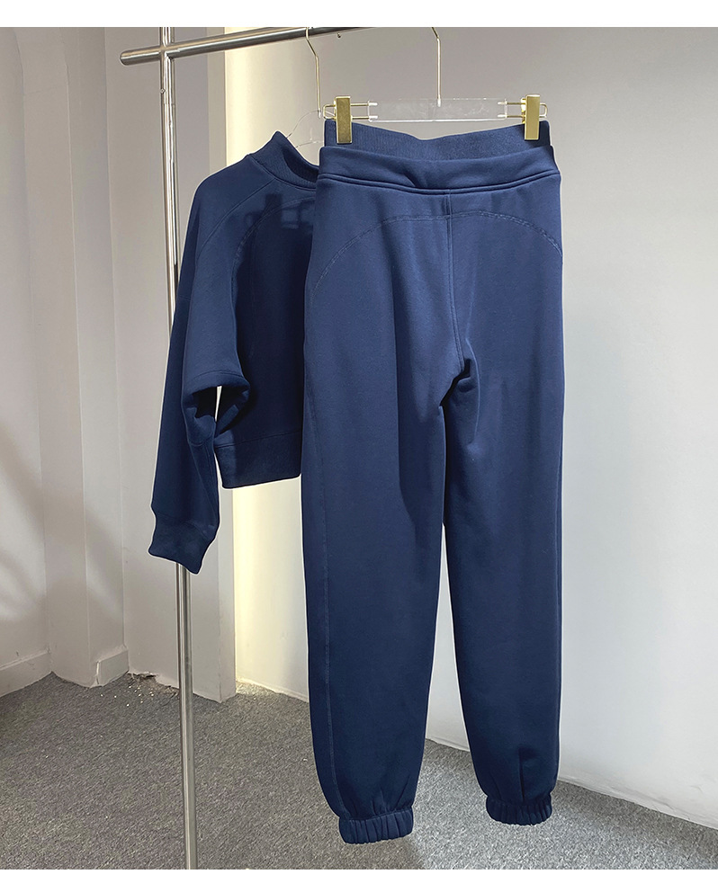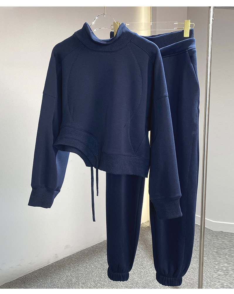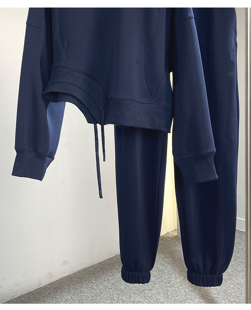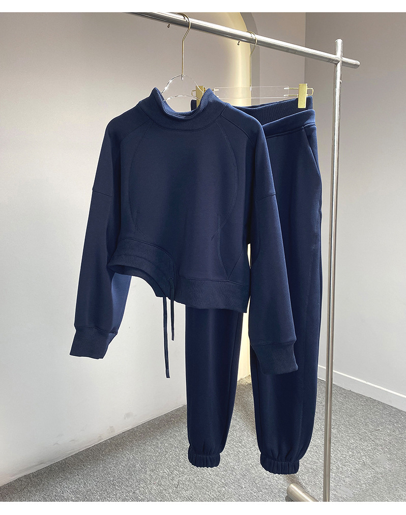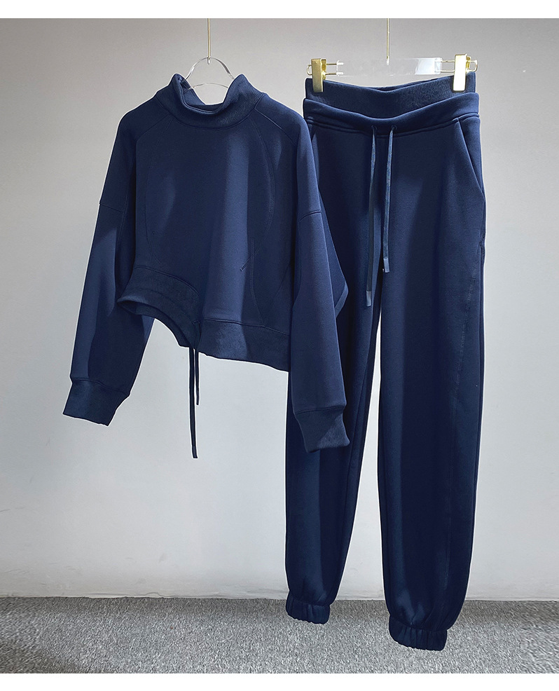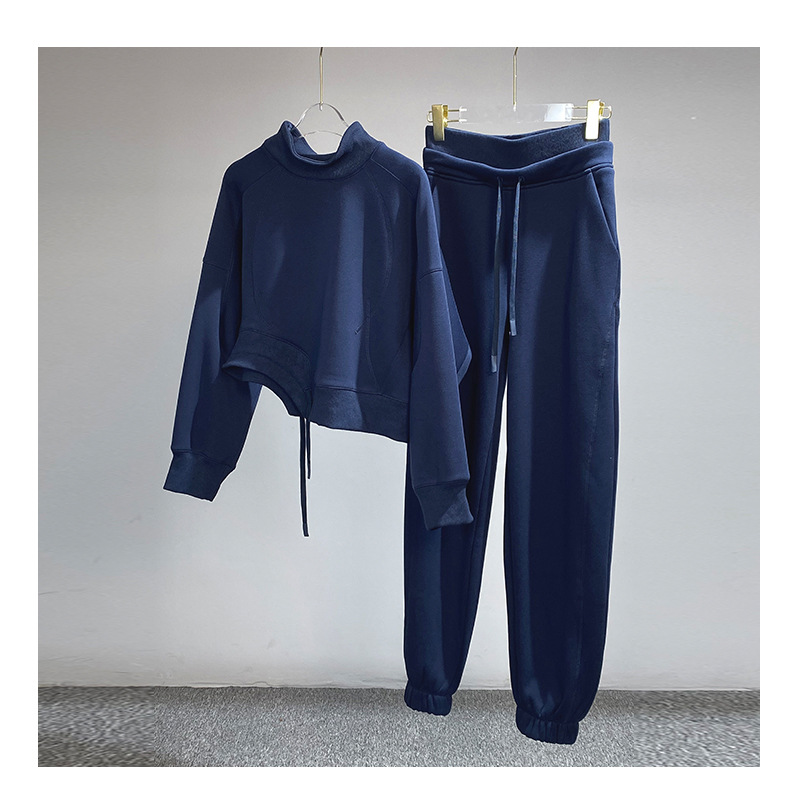 틈새 2023 가을과 겨울 새로운 캐주얼 운동복 짧은 운동복 여성 높은 허리 스포츠 바지 거리 패션 세트 불