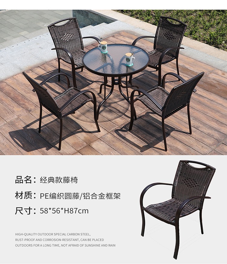 외부 방 안뜰 외부 Teng 야외 등나무 테이블 및 의자 발코니 레저 의자 등나무 의자 테이블 등나무 철 야드 의자 테라스스토어 가기