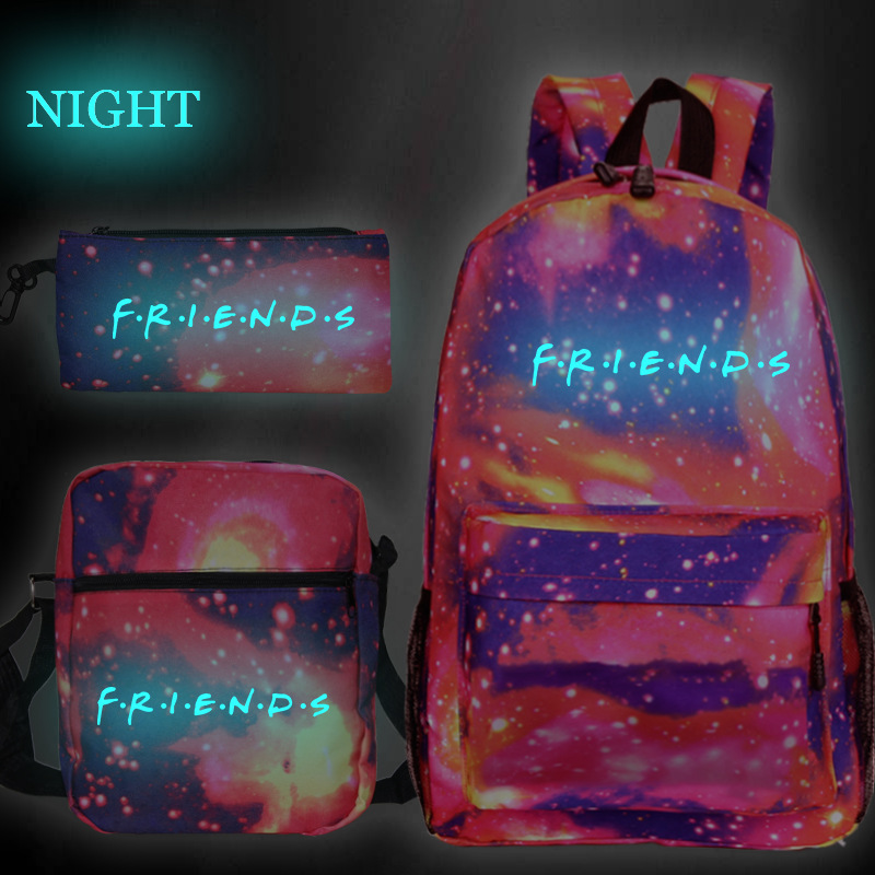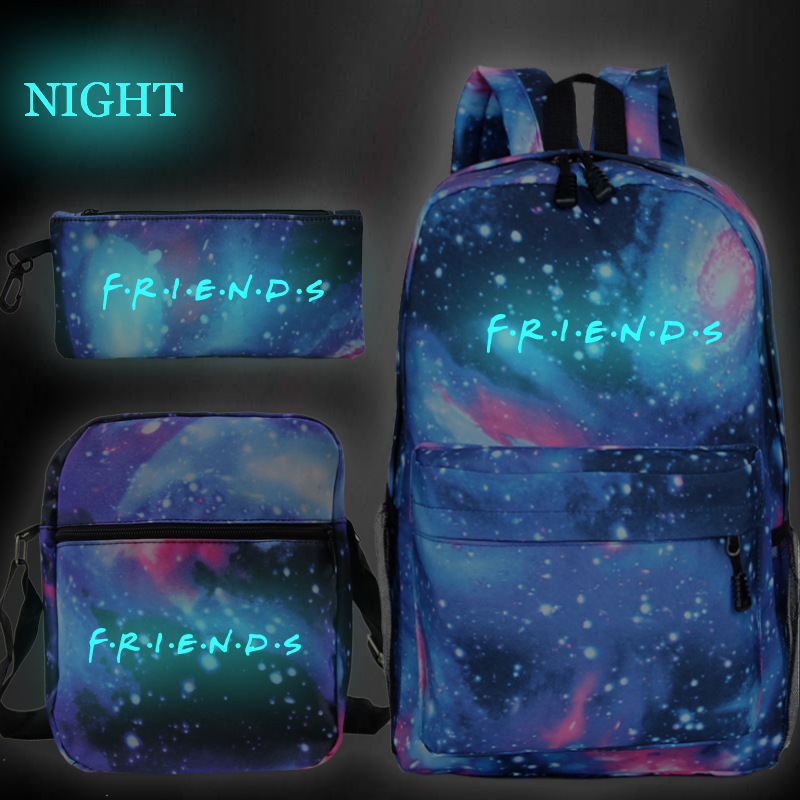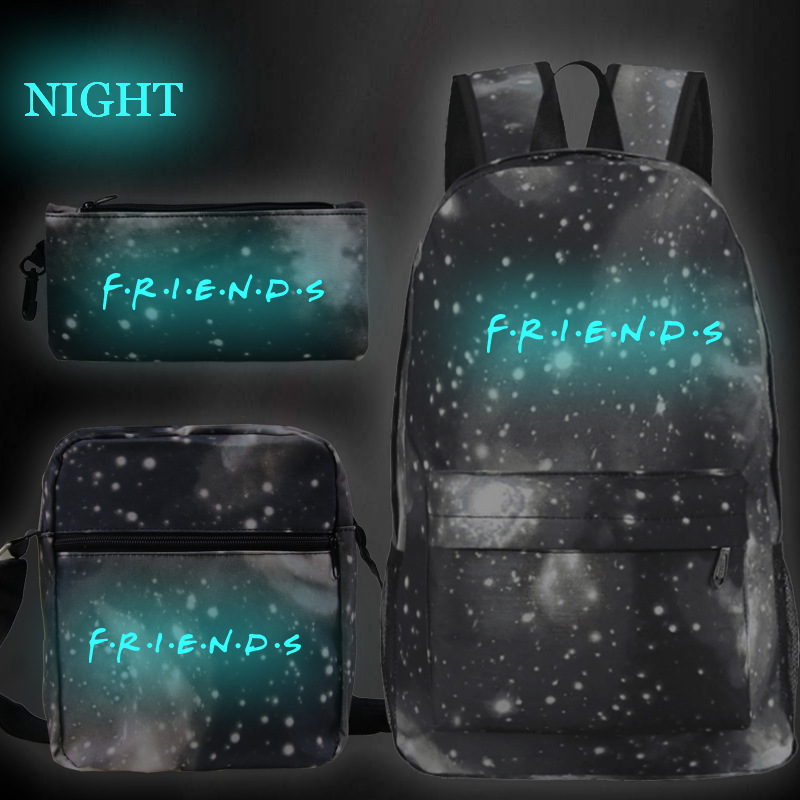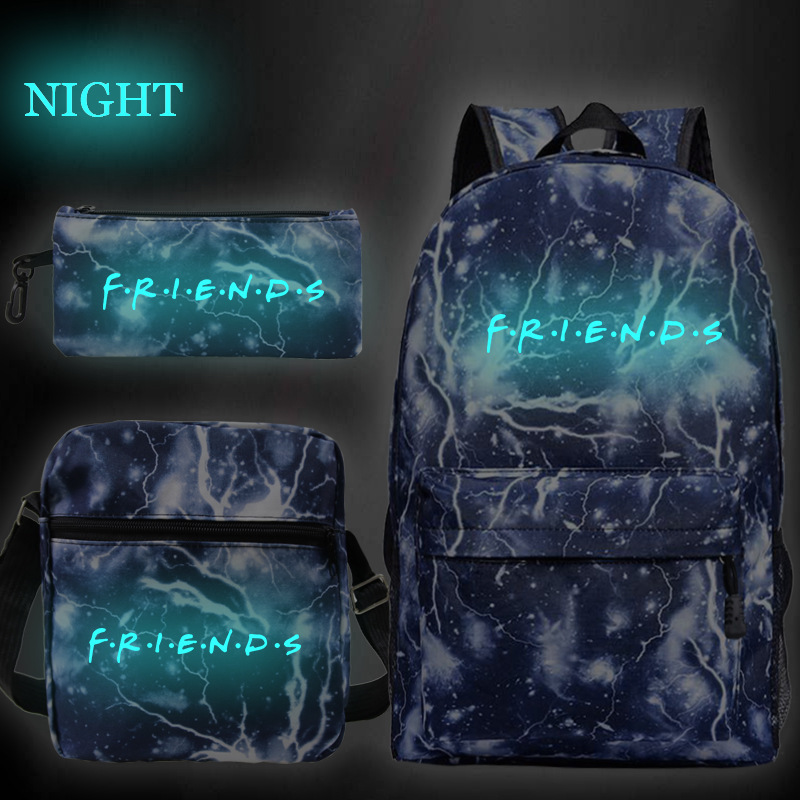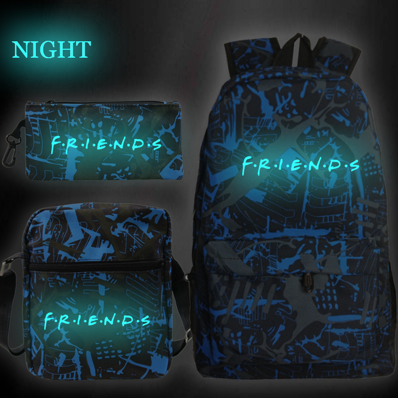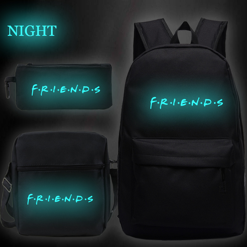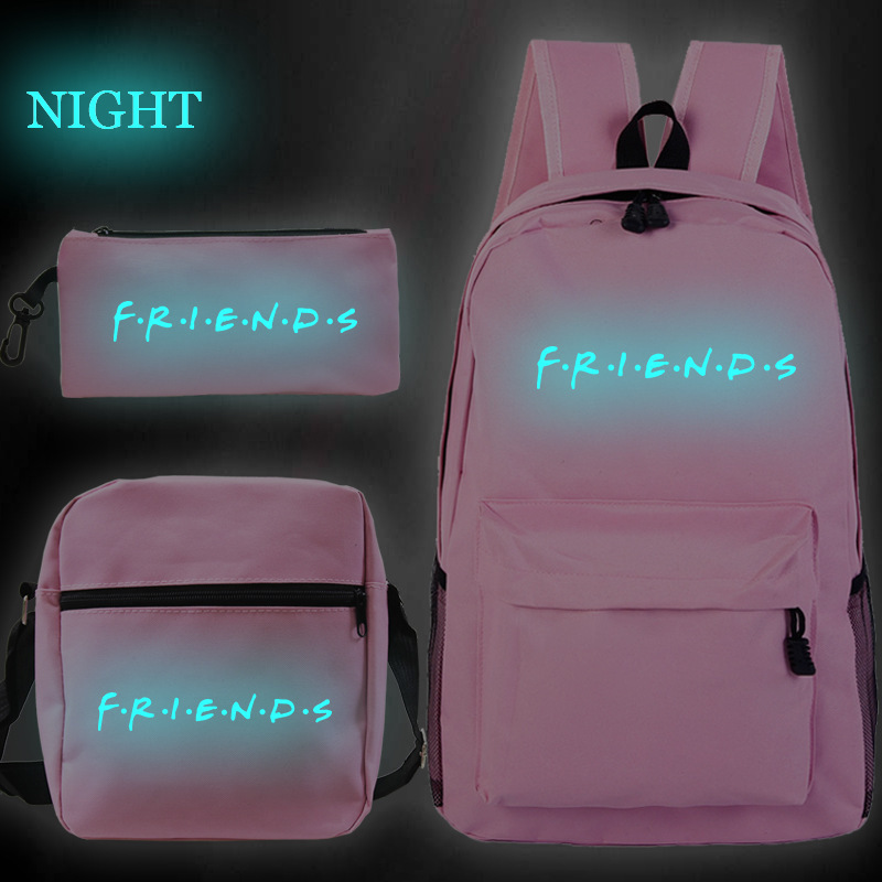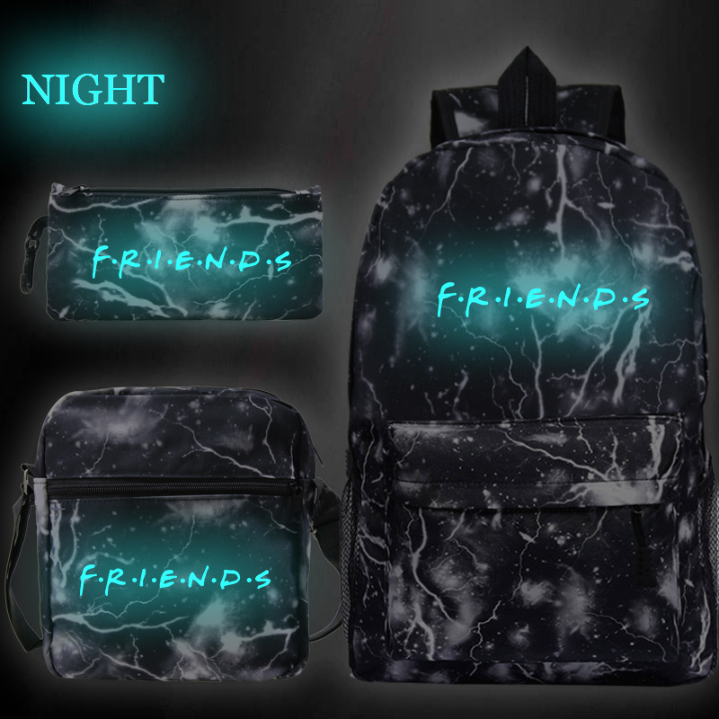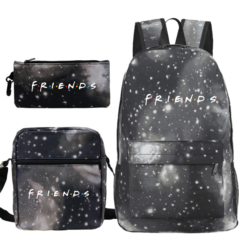3 피스 세트 친구 TV 시리즈 애니메이션 어린이 학교 가방 멋진 학교 가방 학생 어깨 가방 소년 펜 가방