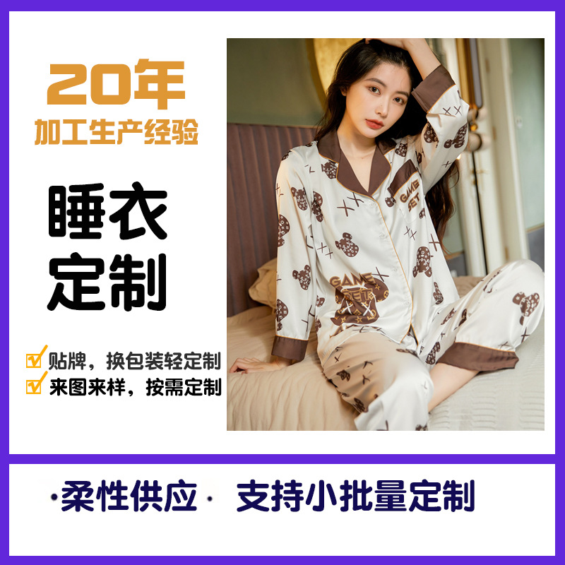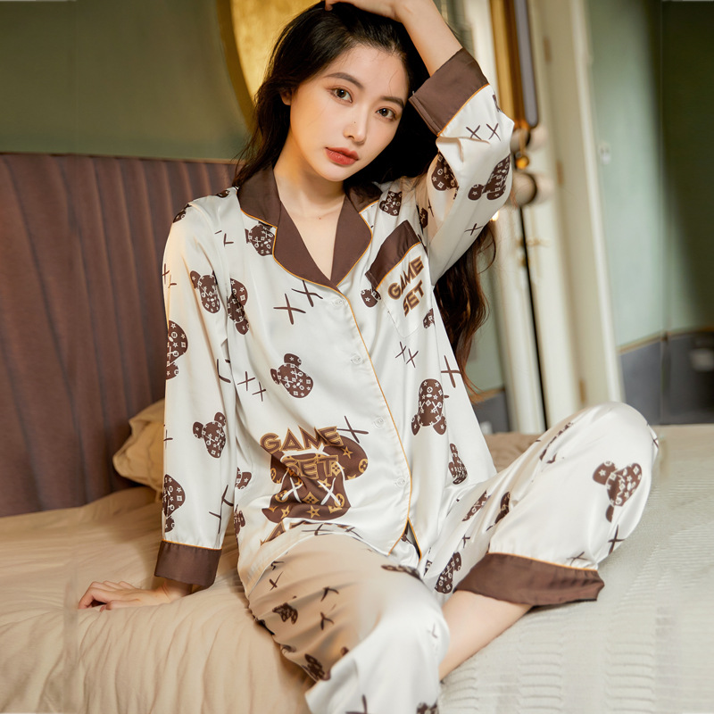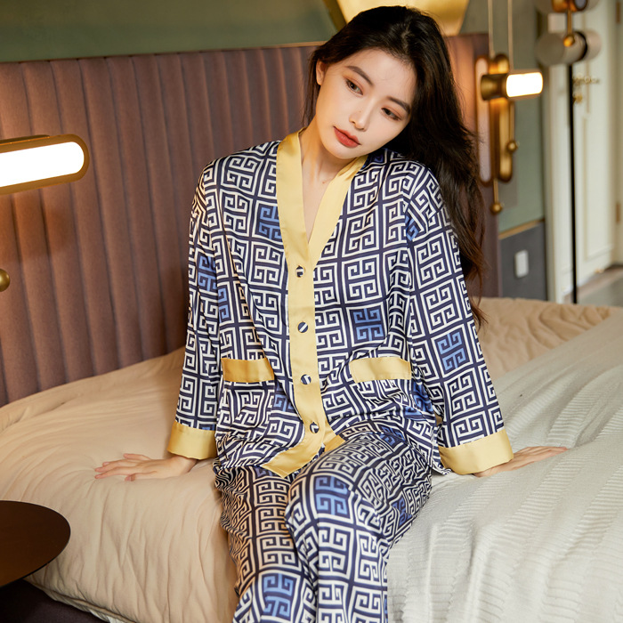봄과 여름 아이스 실크 잠옷 여성 홈웨어 지원 샘플 카디건 긴팔 바지 홈웨어스토어 가기