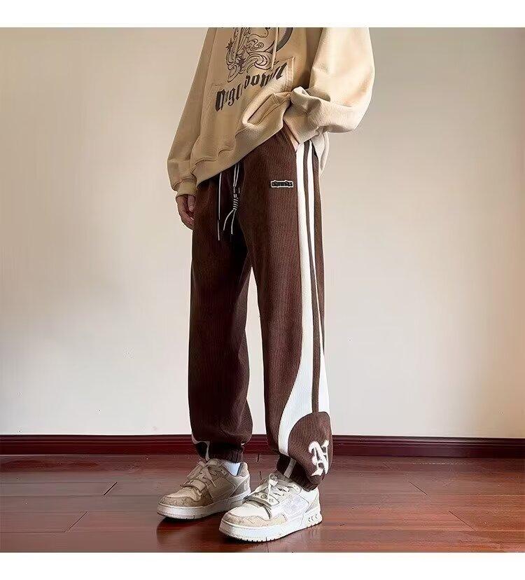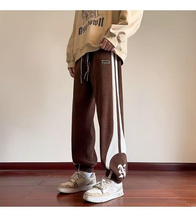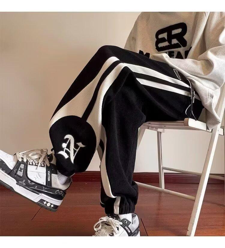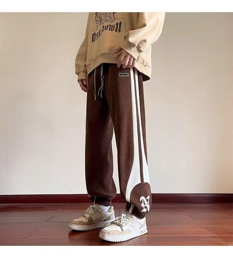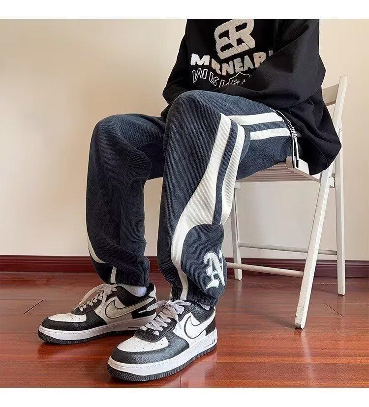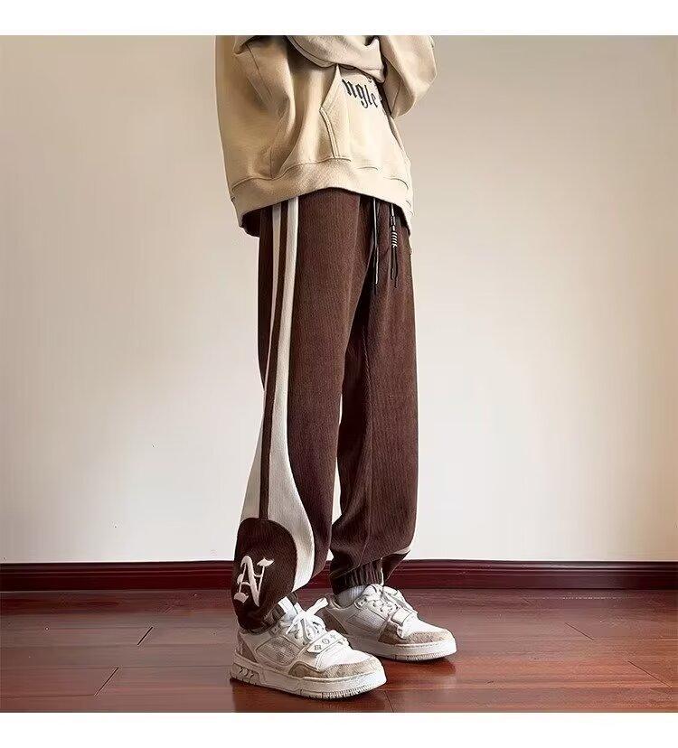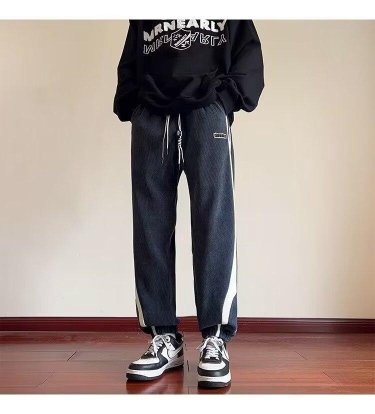 2024 국경 간 새로운 스포츠 바지 남성용 코듀로이 느슨한 캐주얼 바지 올 매치 발목 묶인 바지 패션 브랜드 스웨트 팬츠 바지스토어 가기