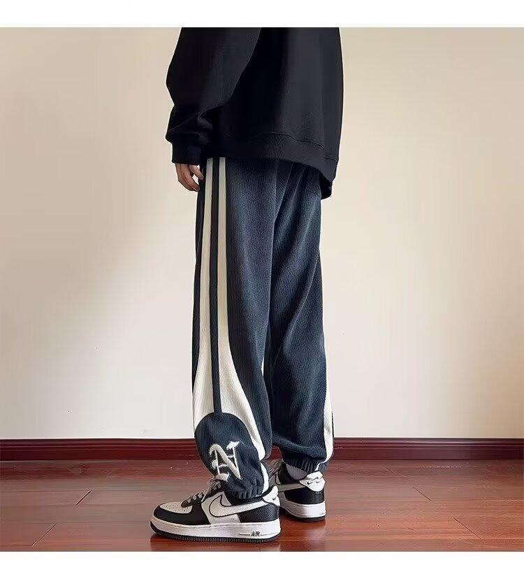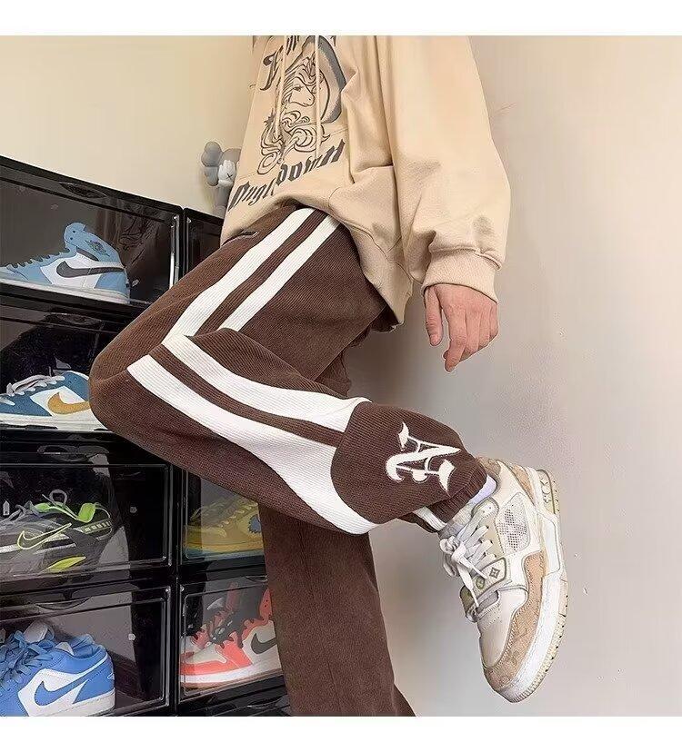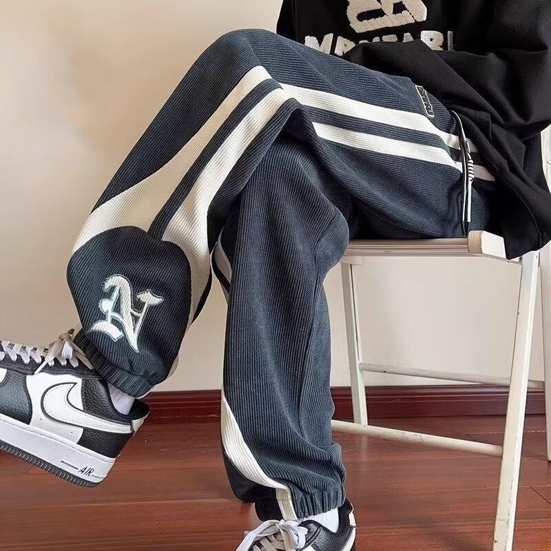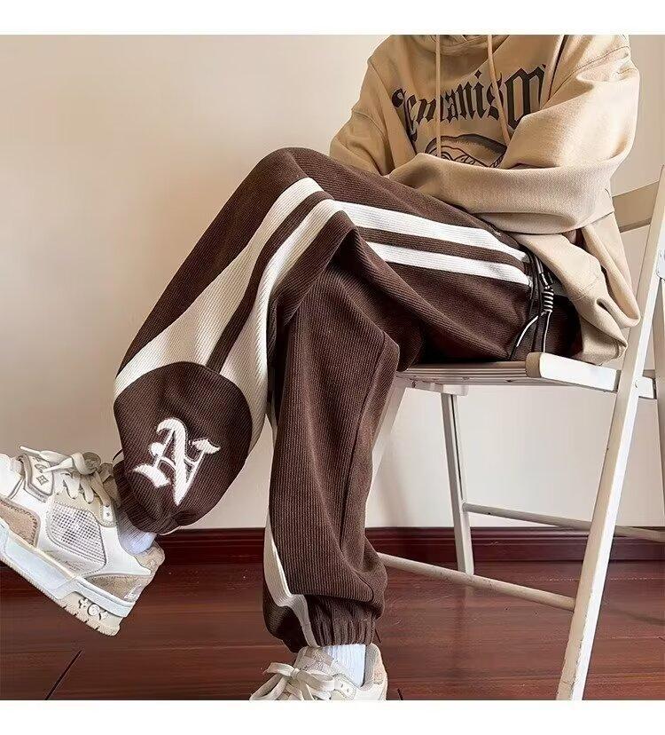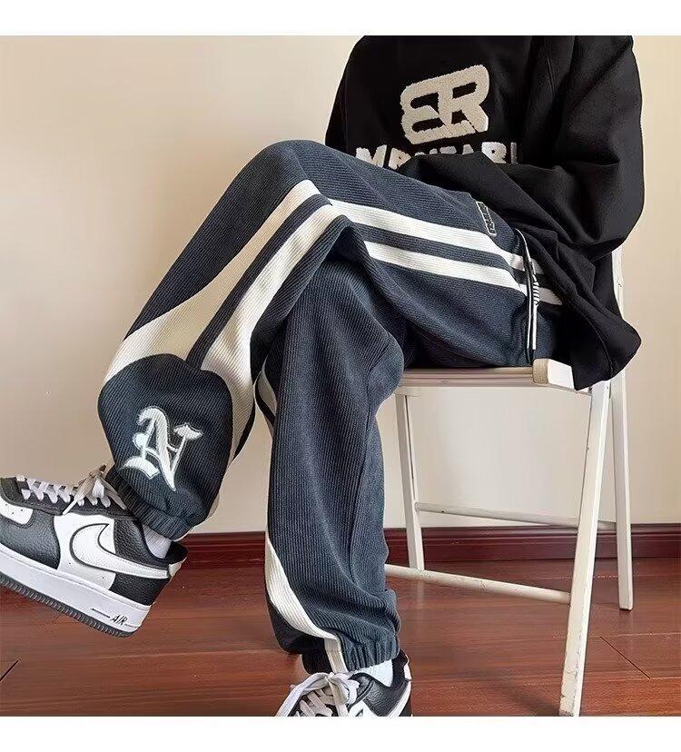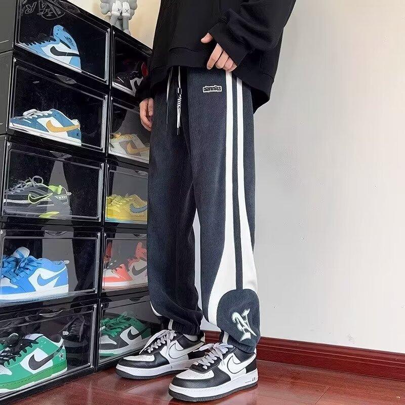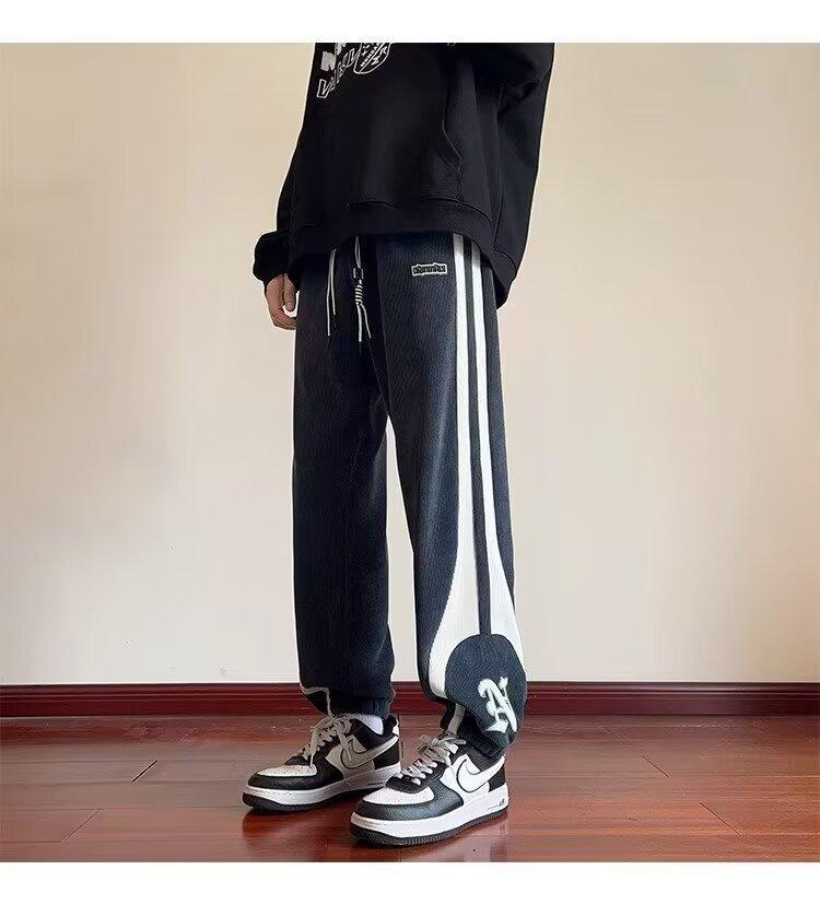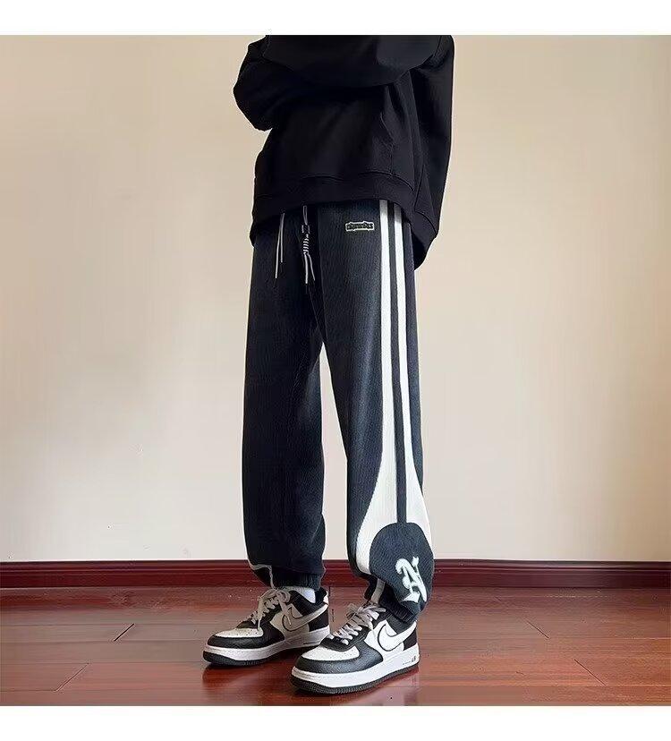 2024 국경 간 새로운 스포츠 바지 남성용 코듀로이 느슨한 캐주얼 바지 올 매치 발목 묶인 바지 패션 브랜드 스웨트 팬츠 바지스토어 가기
