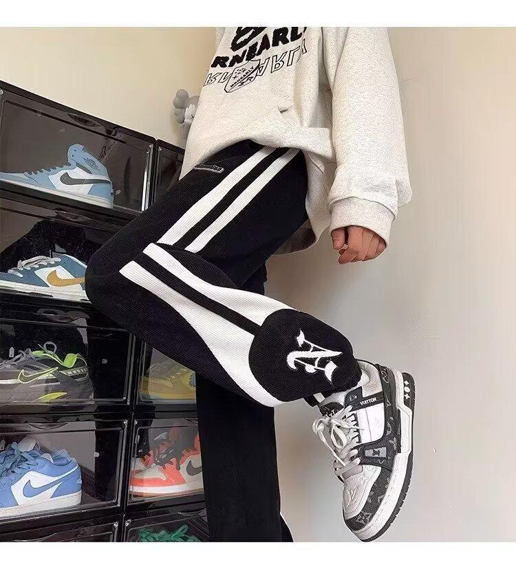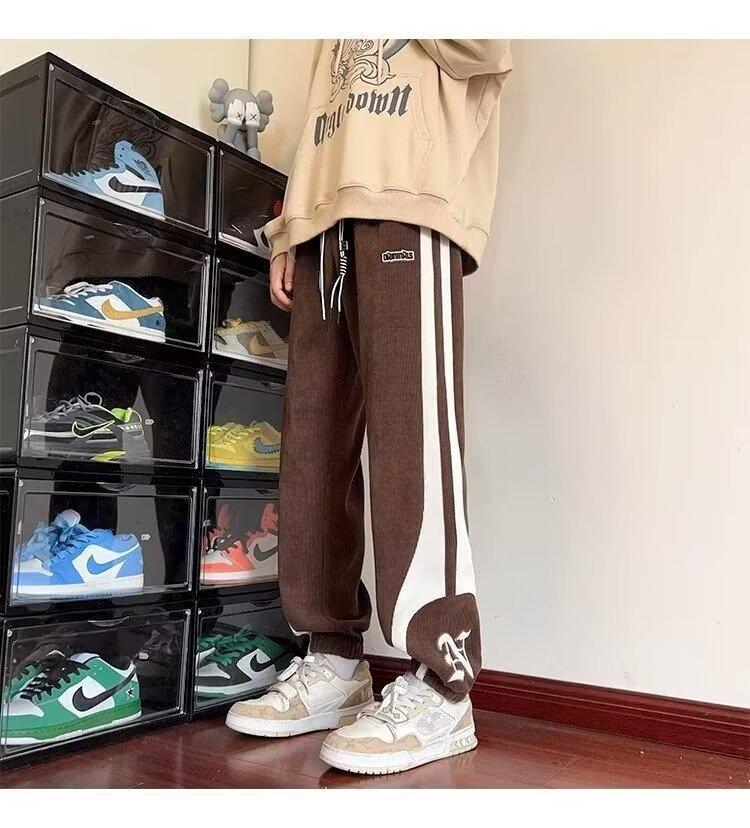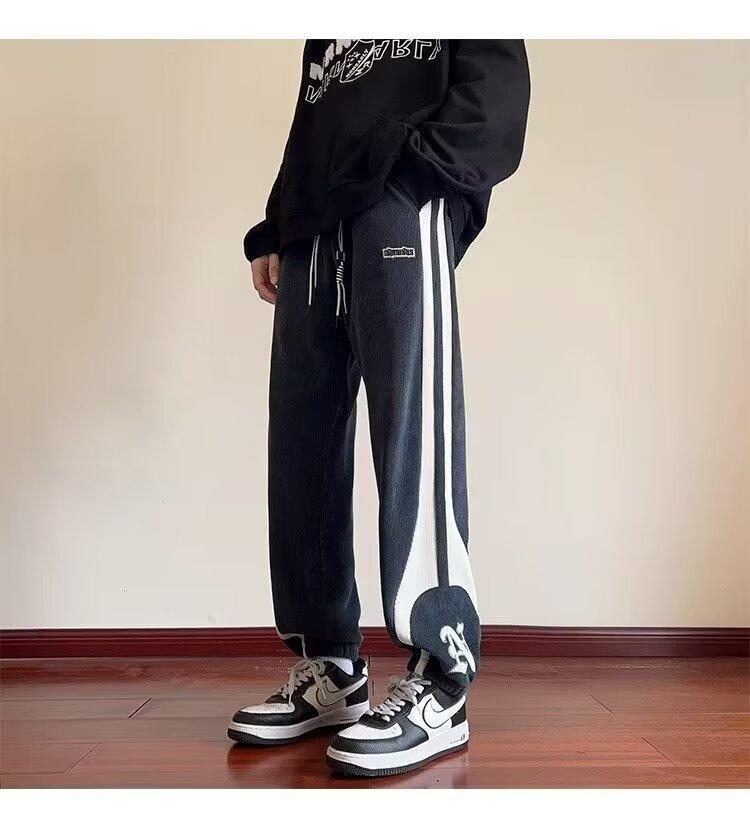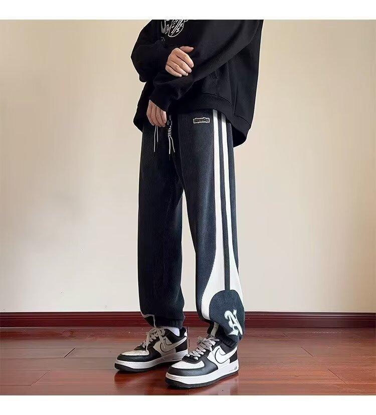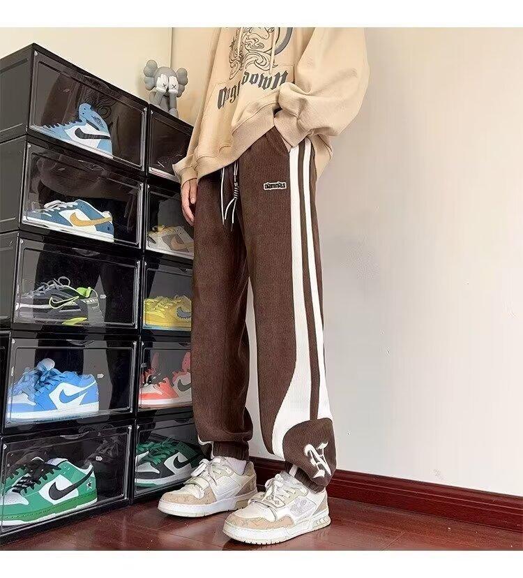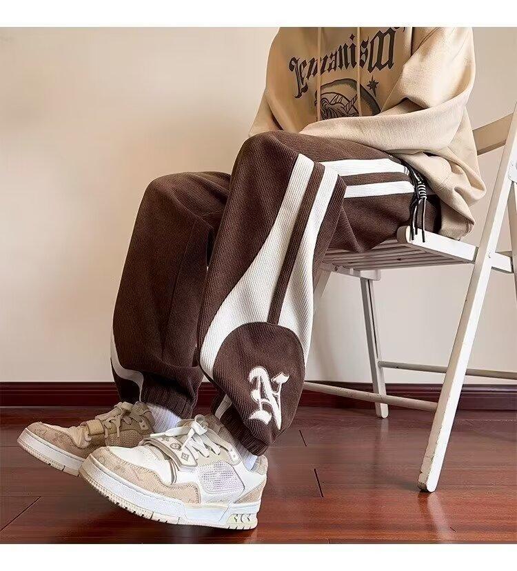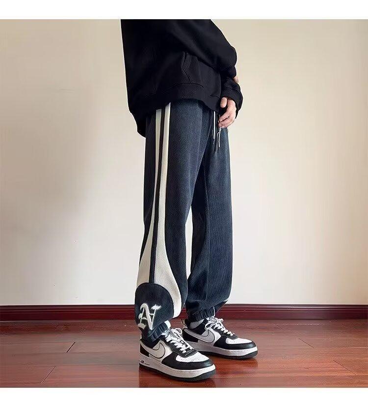 2024 국경 간 새로운 스포츠 바지 남성용 코듀로이 느슨한 캐주얼 바지 올 매치 발목 묶인 바지 패션 브랜드 스웨트 팬츠 바지스토어 가기