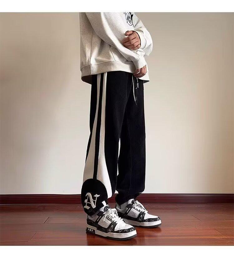 2024 국경 간 새로운 스포츠 바지 남성용 코듀로이 느슨한 캐주얼 바지 올 매치 발목 묶인 바지 패션 브랜드 스웨트 팬츠 바지