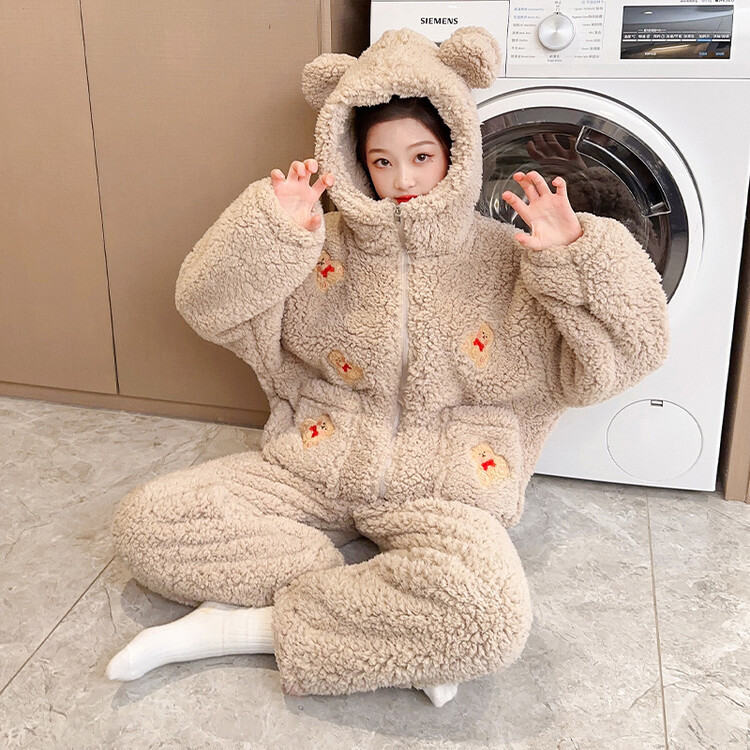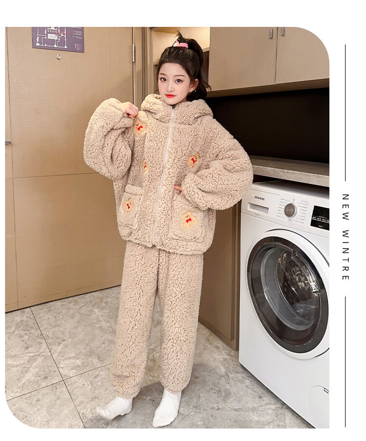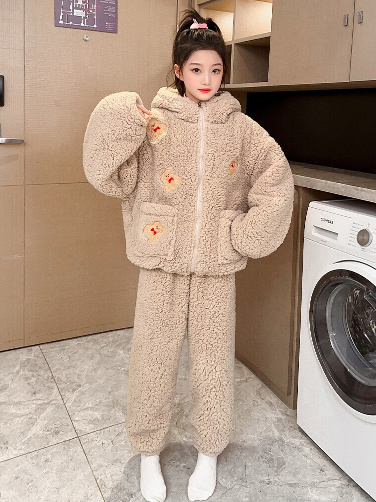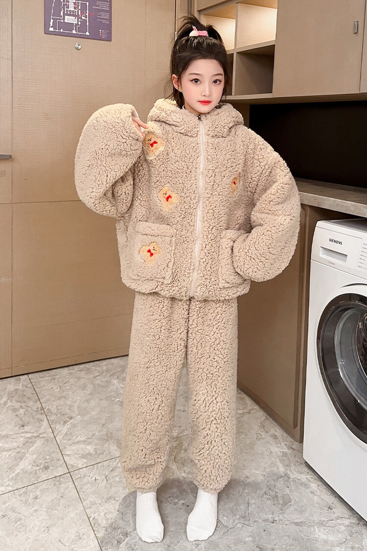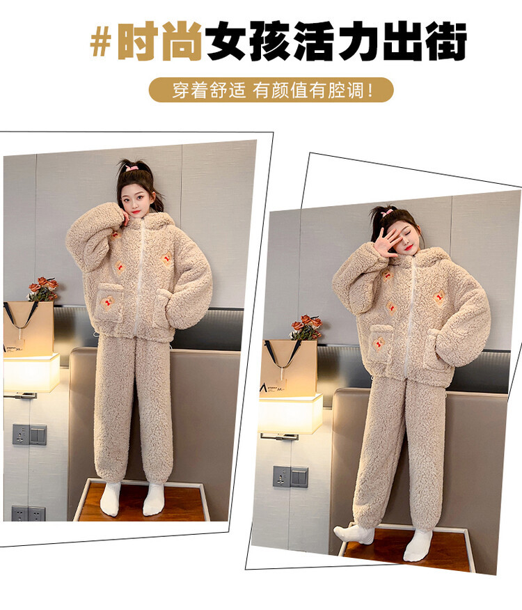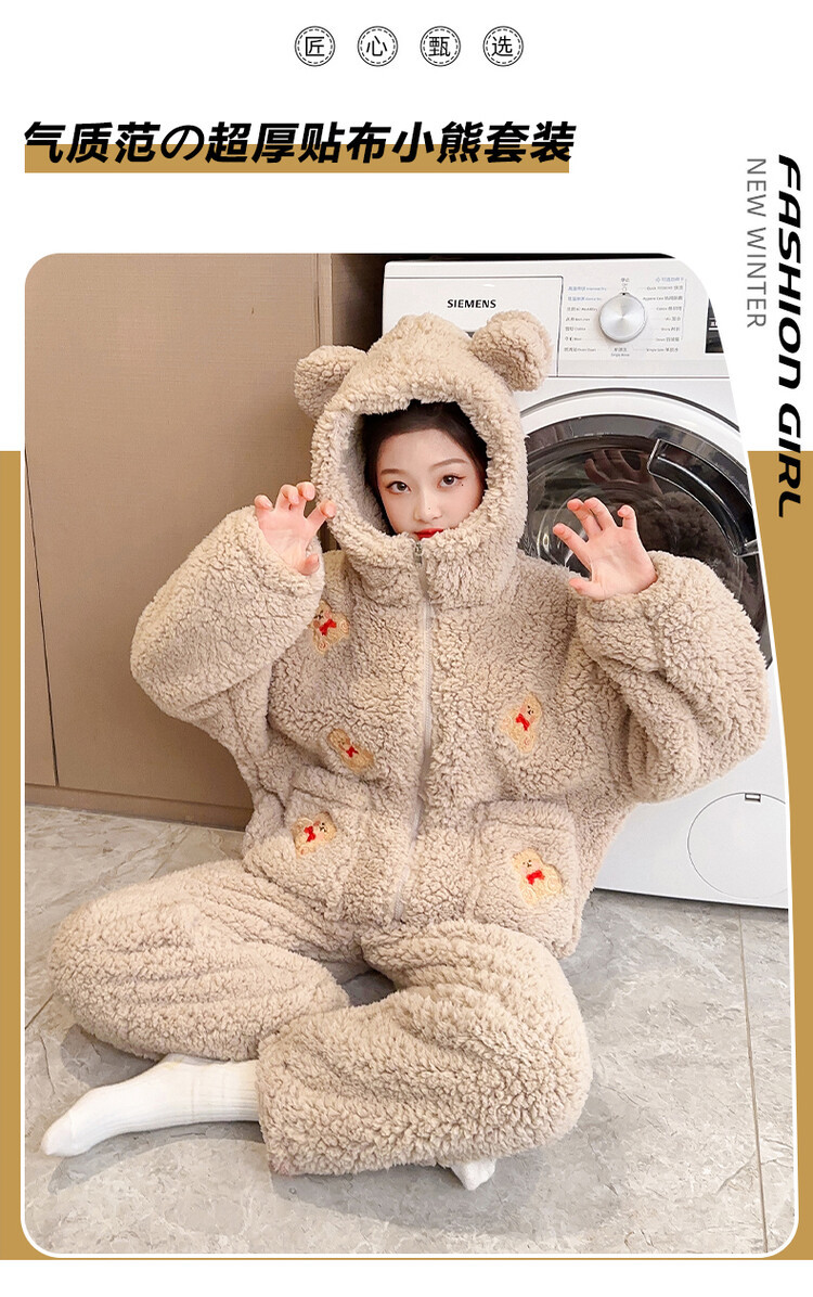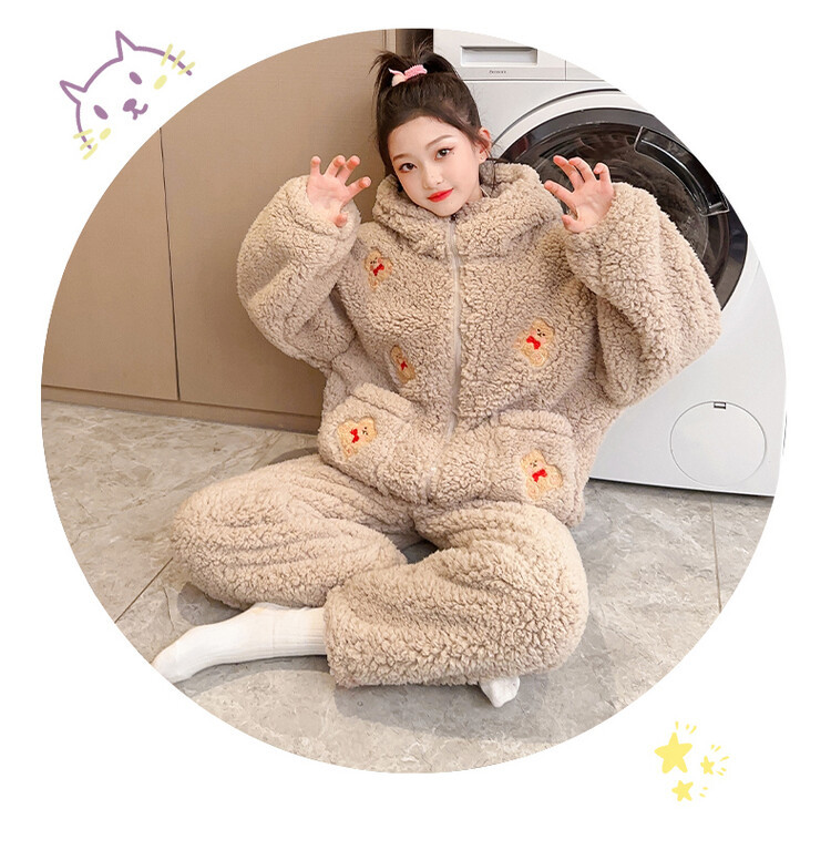 어린이 겨울옷, 귀여운 홈웨어, 후드와 플리스 안감, 남아용 신상 겨울옷, 여아용 두꺼운 플란넬 따뜻한 잠옷스토어 가기