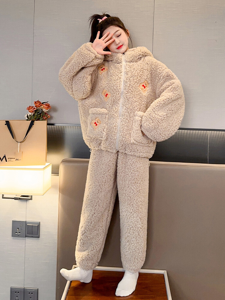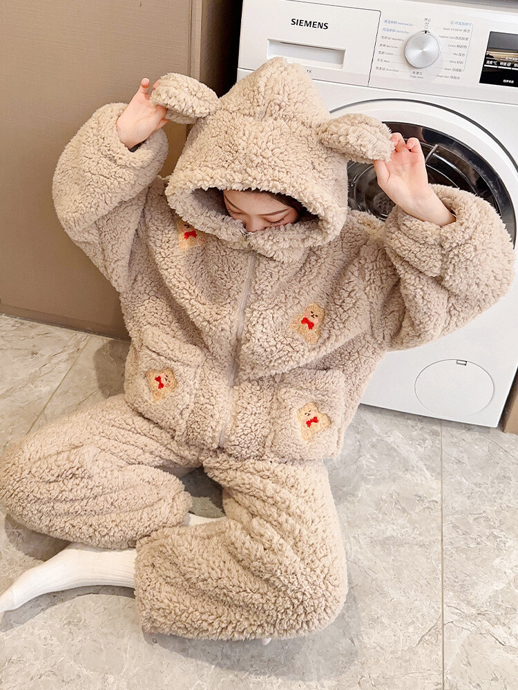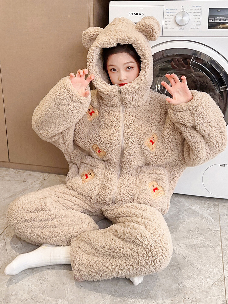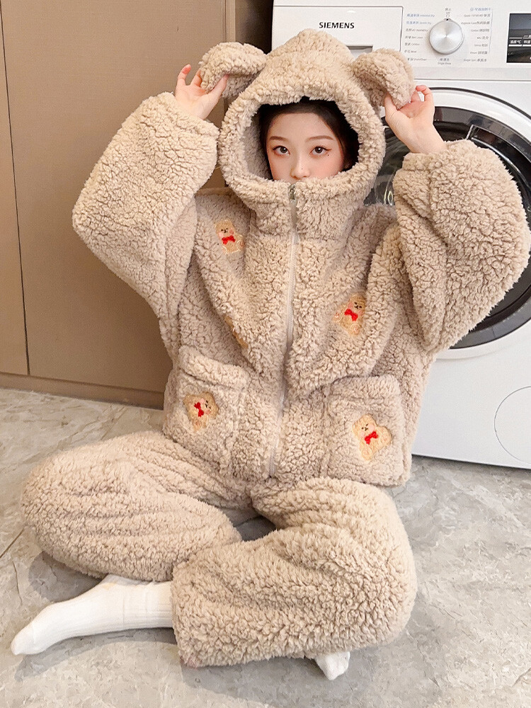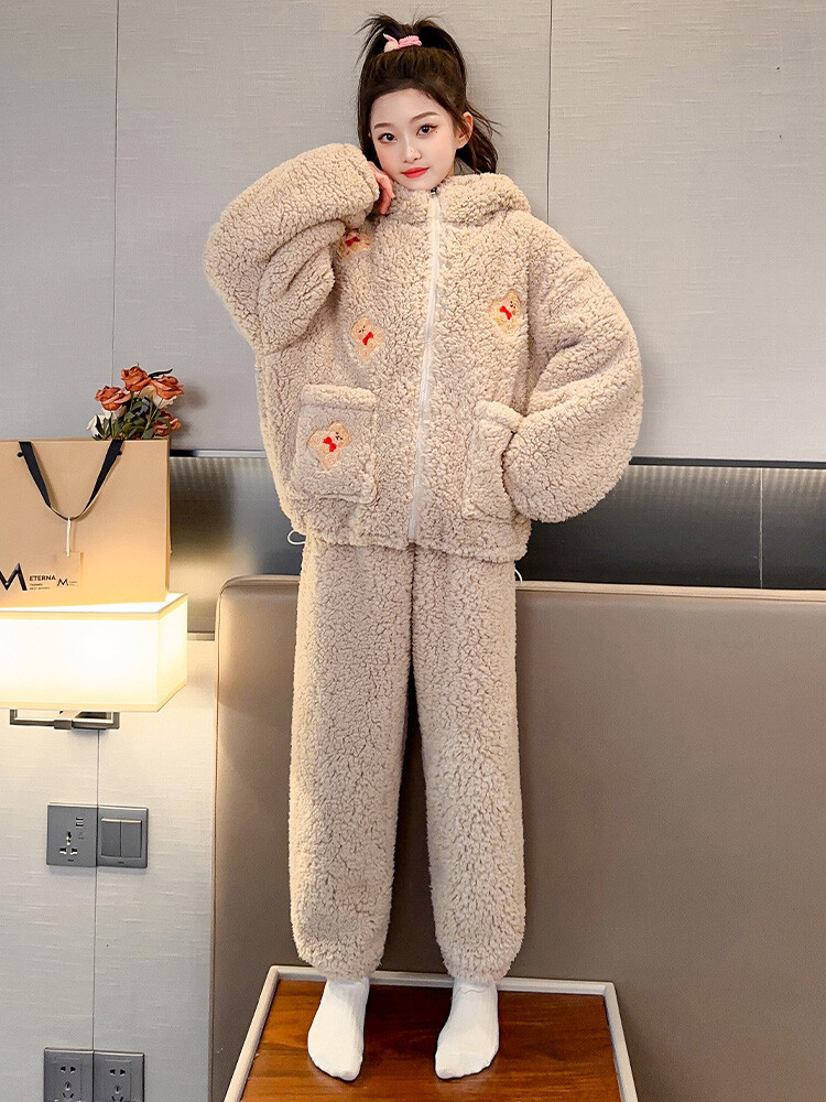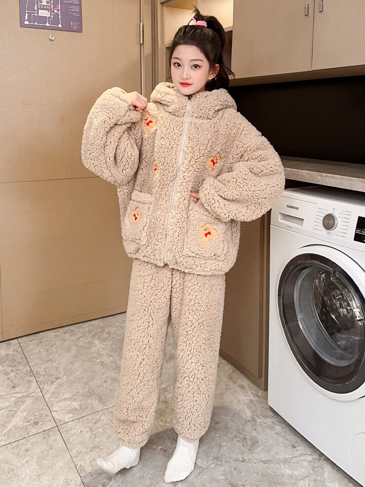어린이 겨울옷, 귀여운 홈웨어, 후드와 플리스 안감, 남아용 신상 겨울옷, 여아용 두꺼운 플란넬 따뜻한 잠옷스토어 가기