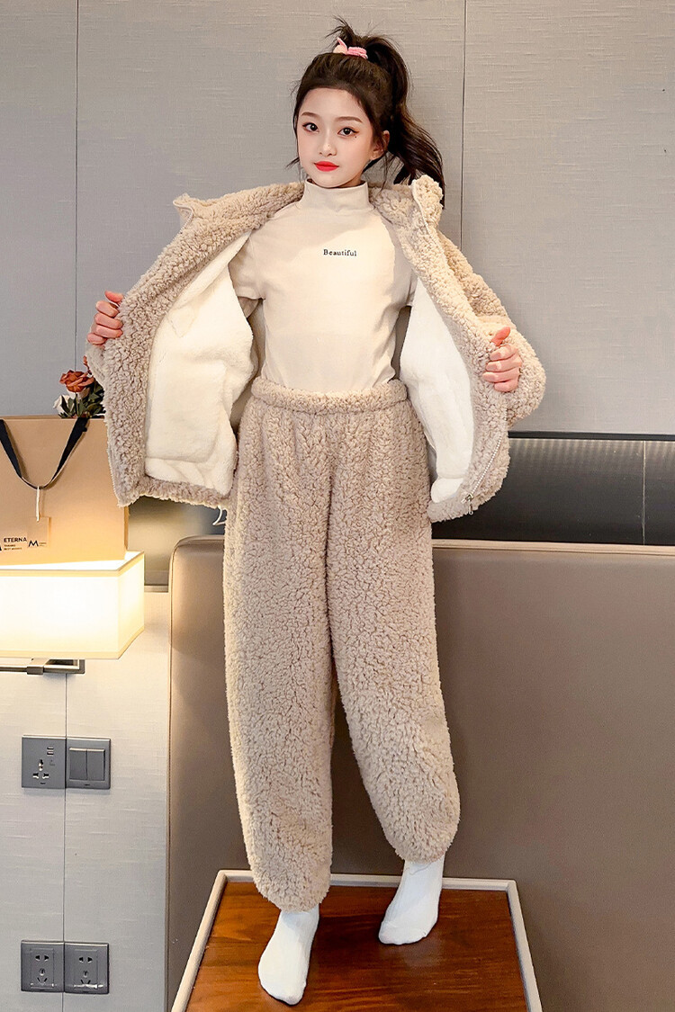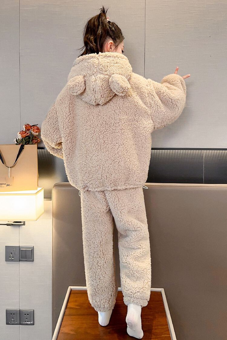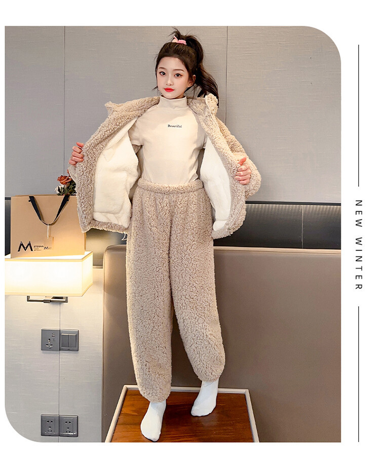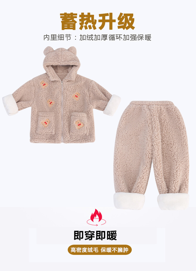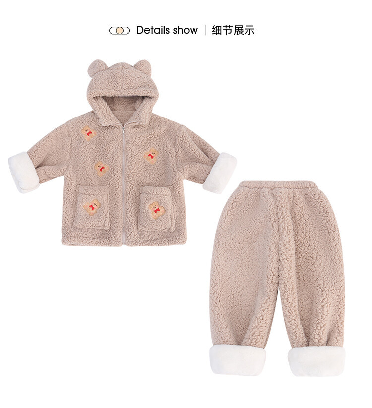 어린이 겨울옷, 귀여운 홈웨어, 후드와 플리스 안감, 남아용 신상 겨울옷, 여아용 두꺼운 플란넬 따뜻한 잠옷