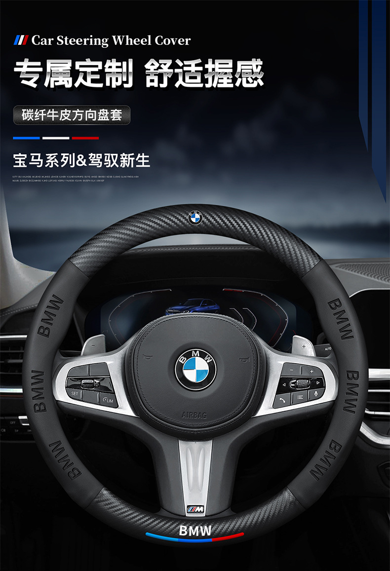 BMW 스티어링 휠 커버 탄소 섬유 3 시리즈 5 시리즈 4 시리즈 7 시리즈 x1x3x4x5x6x7 자동차 가죽 핸들 커버 전용스토어 가기