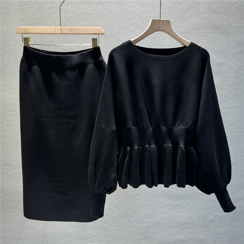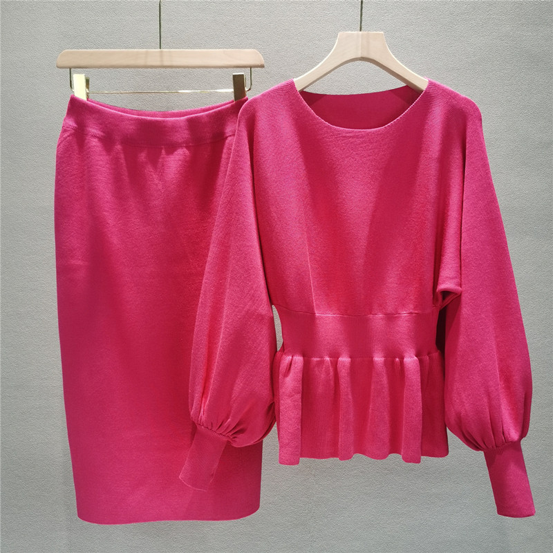 국경 대외 무역 다목적 여성스러운 기질 투피스 프릴 스웨터 하이 웨이스트 슬림 스커트 정장 여성 가을