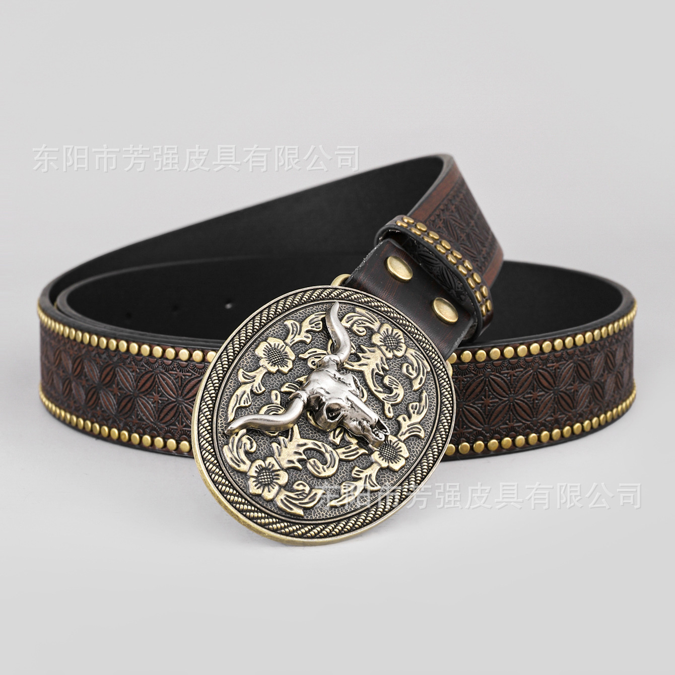 웨스턴 카우보이 남성 벨트 몽골 벨트 남성 내구성 하이 엔드 대기 벨트 남성 틈새 핫 스타일 상감 리벳