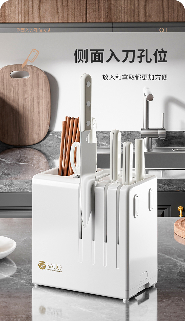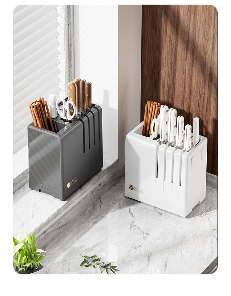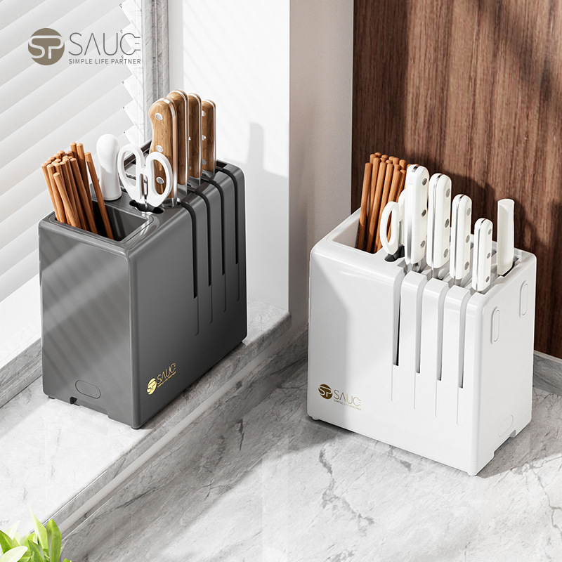 주방 나이프 랙 스토리지 랙 테이블 탑 다기능 젓가락 홀더 배수 나이프 랙 통합 스토리지 박스 가정용 주방 나이프 랙