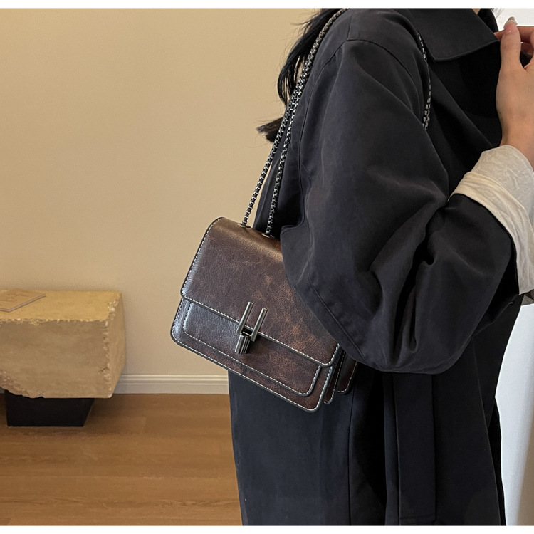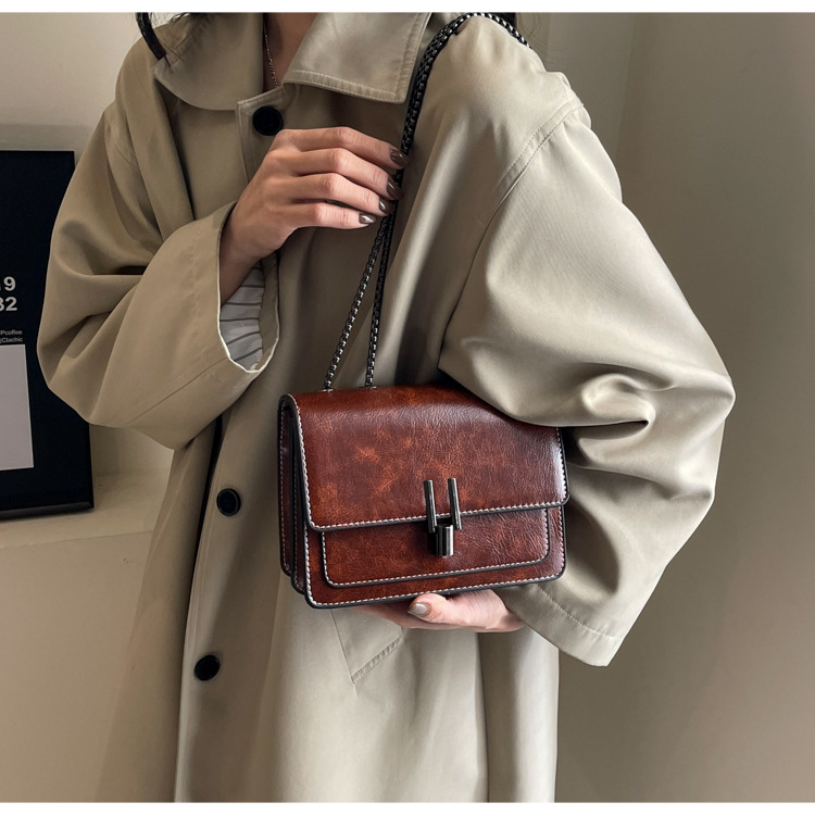 간단한 복고풍 작은 가방 여성 가방 2024 인기있는 새로운 패션 체인 작은 사각형 가방 올 매치 어깨 메신저 가방스토어 가기